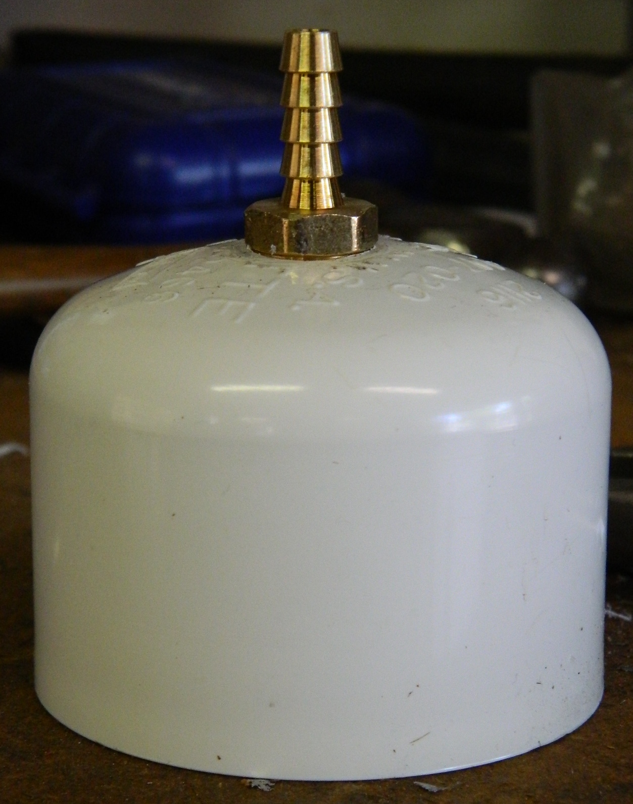 I started by drilling a 2″ end cap and seating a hose fitting to it: