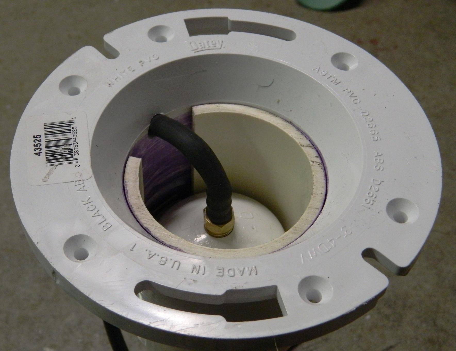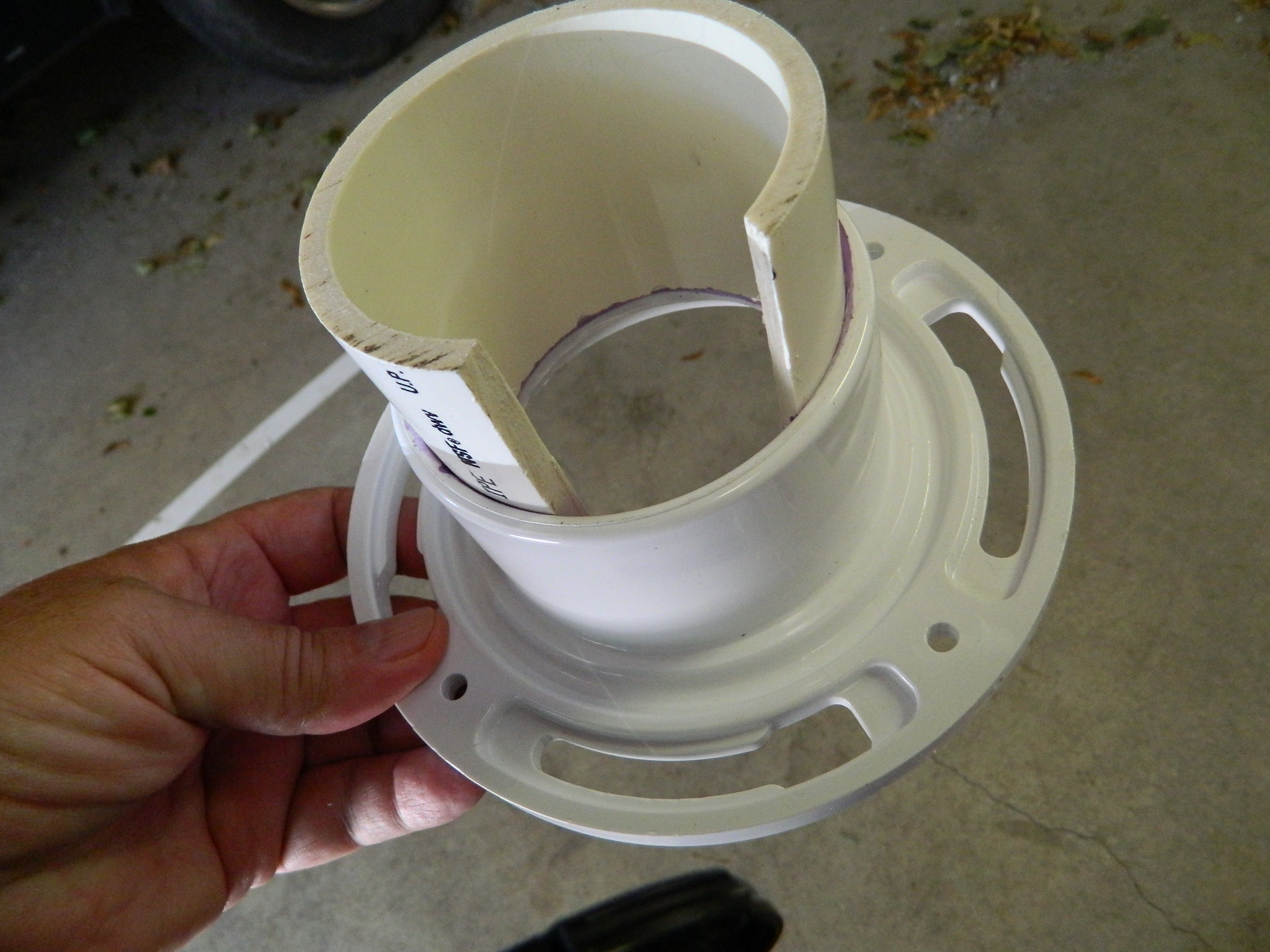 Pump base (closet flange, 3″-2″ reducer, 4″ piece of 3″ pipe)