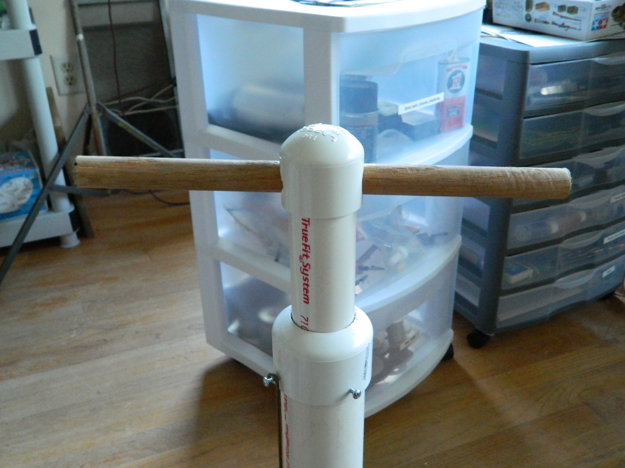 Before you start cutting, drilling and gluing, a general note regarding PVC pipe and fittings. These things fit TIGHTLY. Having pipes seated all the way into the pipe is A Good Thing, so when I was gluing this all together, I hammered the pipe all the way into the pipe. When gluing, use adhesives specifically for PVC. It’s a two-part step. The first part is to prep the surface with the primer and the second step is to use the adhesive. The adhesive should not be a gel but rather it should be a thick liquid. Also, use in well-ventilated areas! This stuff is strong and is not good for you to inhale.