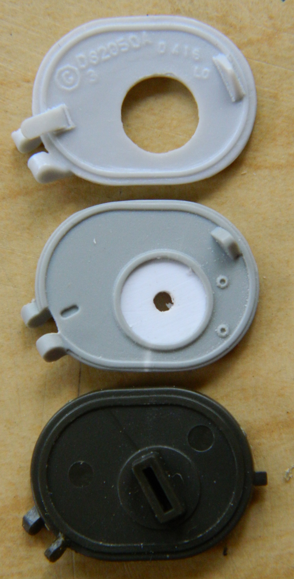 Before I could dry-fit the new part to check fit, I had to remove plastic from the hull and then I plugged the hole with sheet styrene: