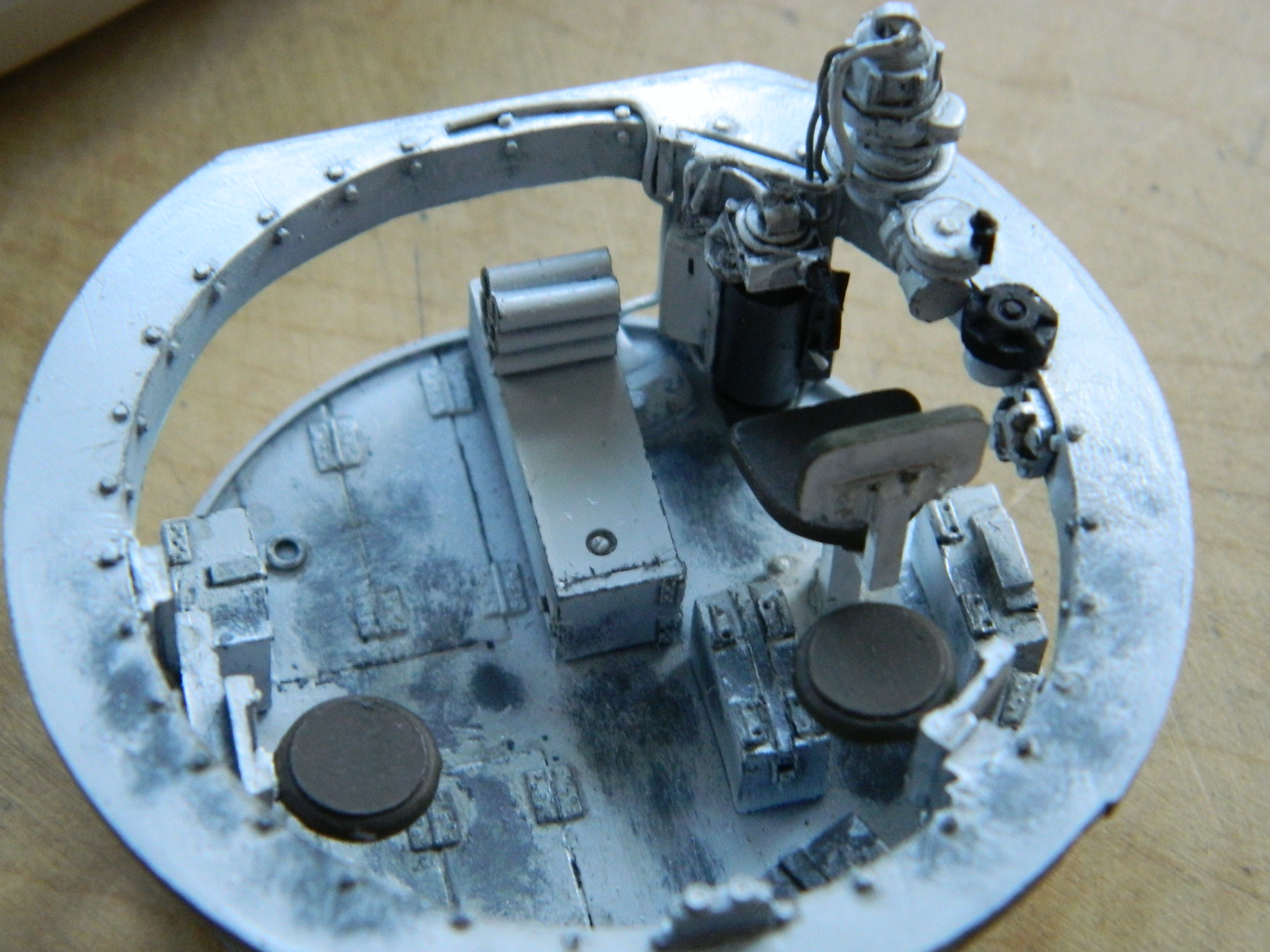 The next step is to add some more chipping and scraping wear to the turret basket and associated parts (and to cover that damned aluminum):