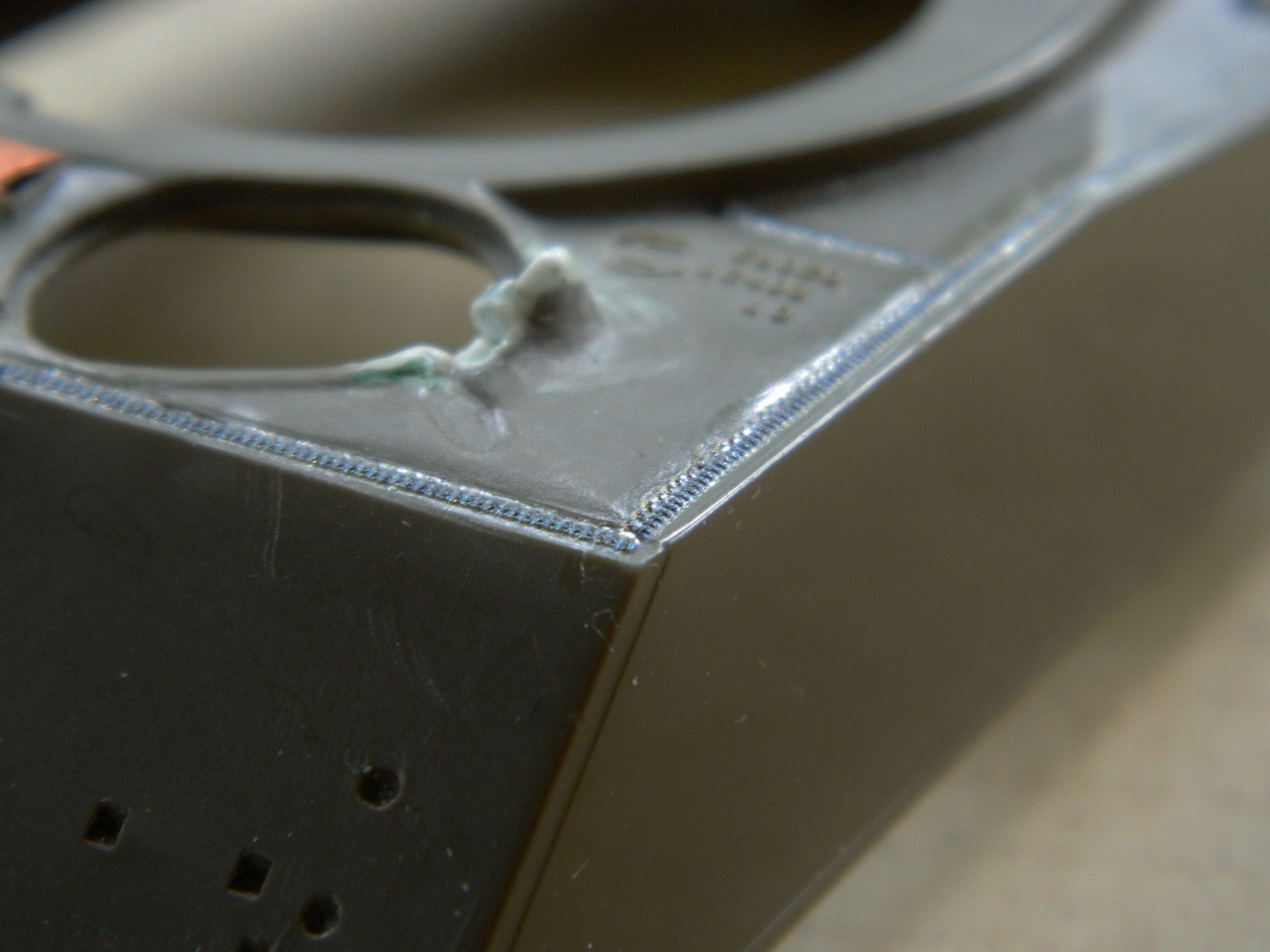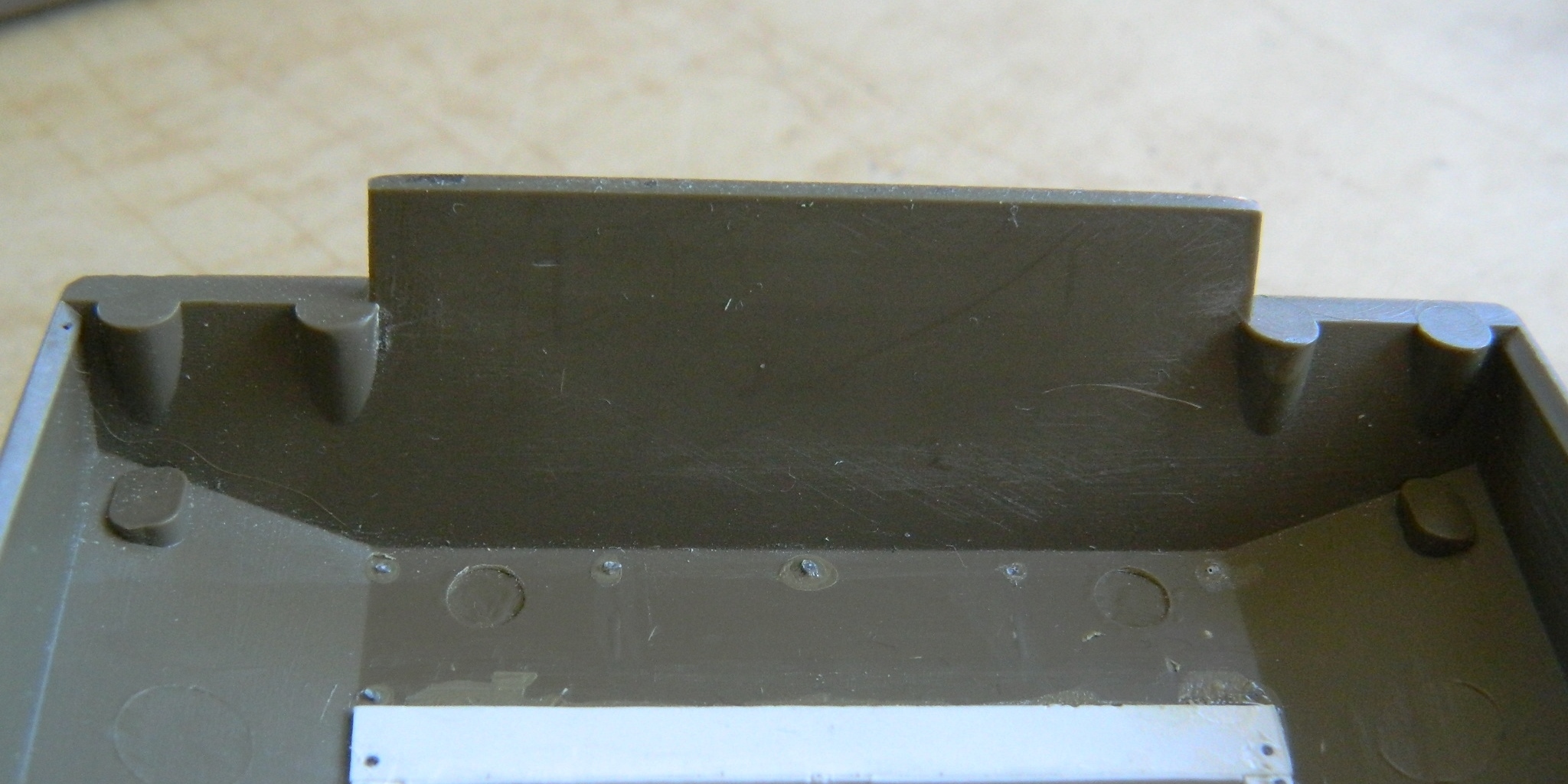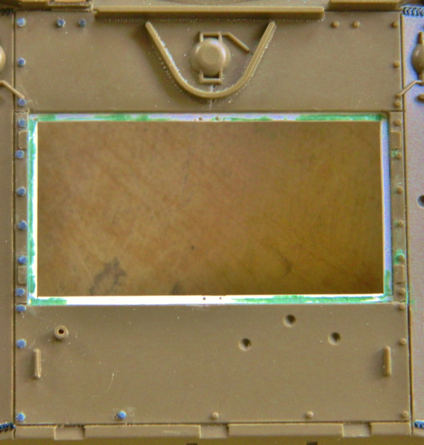 Since I will be replacing the kit’s storage brackets for extra track links with resin parts (NTMD again), the slots in the rear hull face need to be filled and smoothed, inside and out (removing the provisions for the slots on the inside of the hull is going to make fitting sponsons later SO much easier):