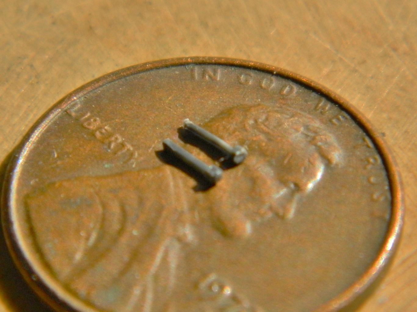 All the rear plates on top of the rear hull are removable and there are supposed to be grab handles where the kit has“fins.” Copper wire is cold-drawn which makes it hard and resistant to bending. I annealed the wire and replaced the fins with something more accurate: