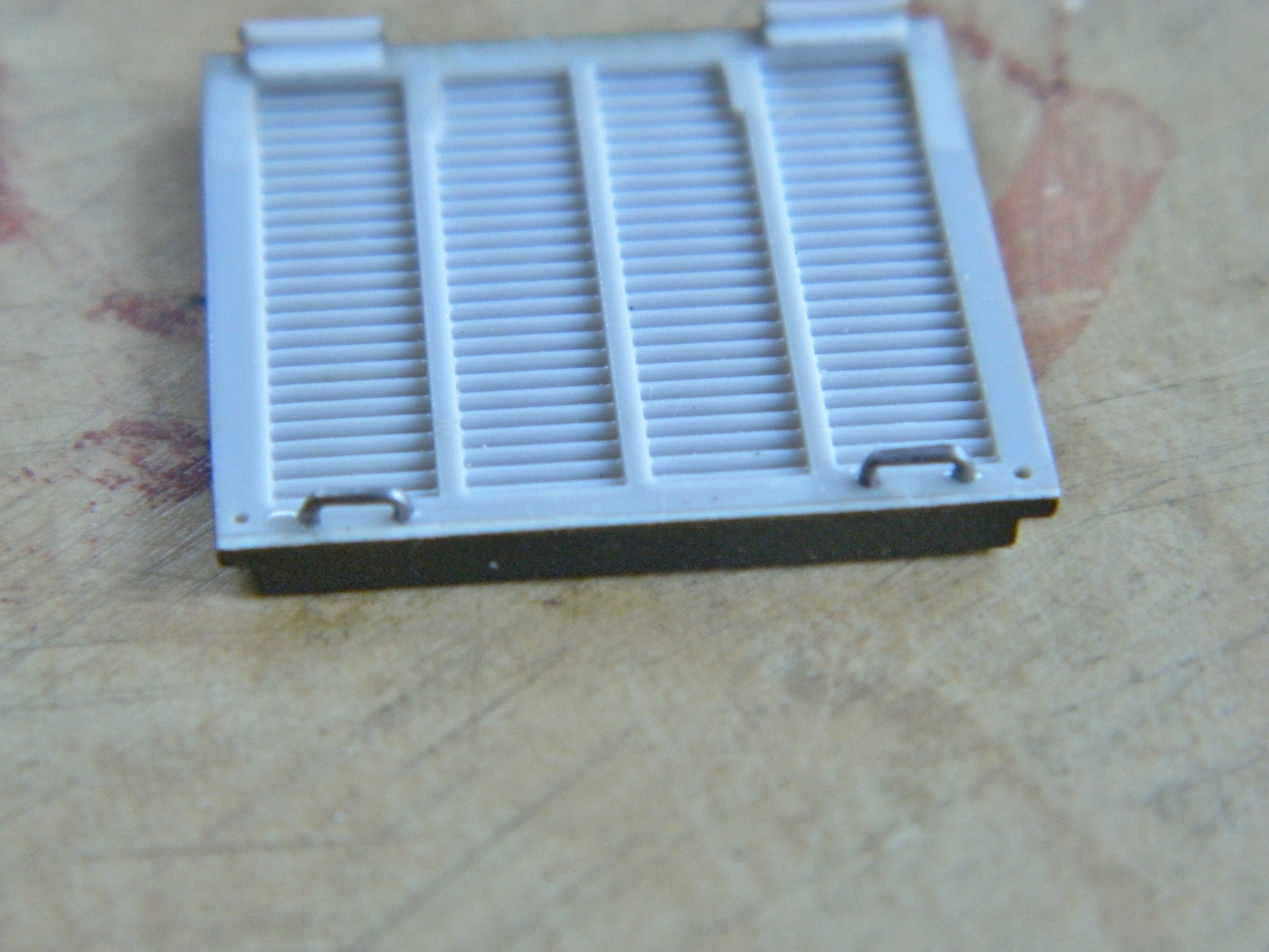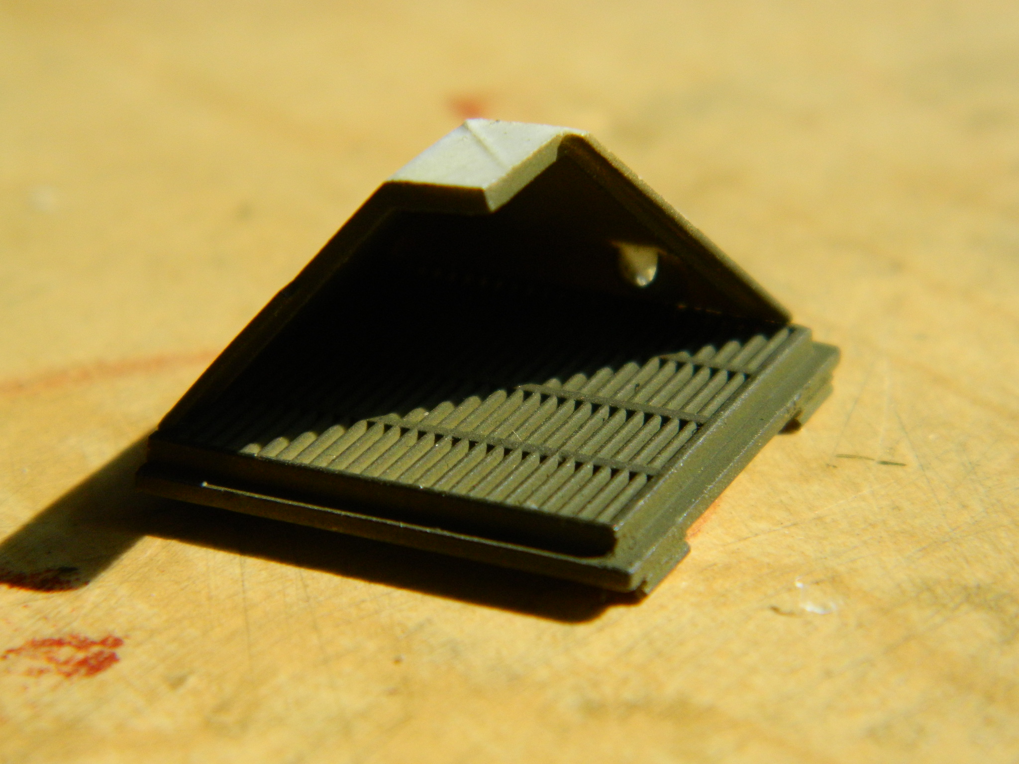 I tried doing the same thing for the grab handles of the engine covers, but even annealed the copper (successfully) resisted giving me the sharp bends I wanted so I used 020 solder instead. I also added the rain baffles to the inside surface of the engine covers: