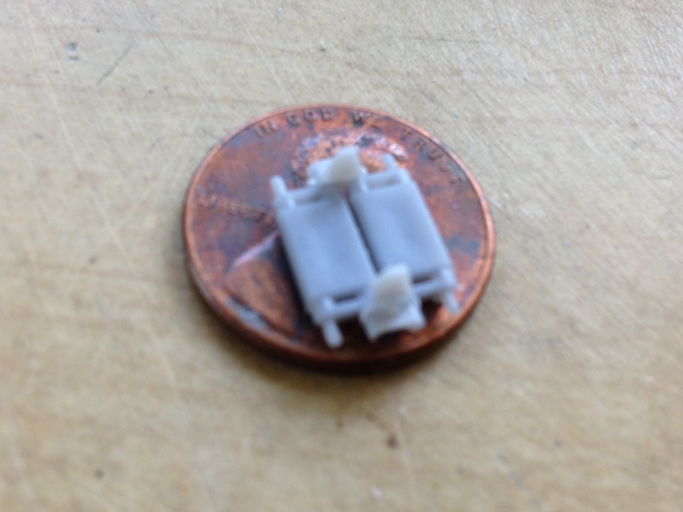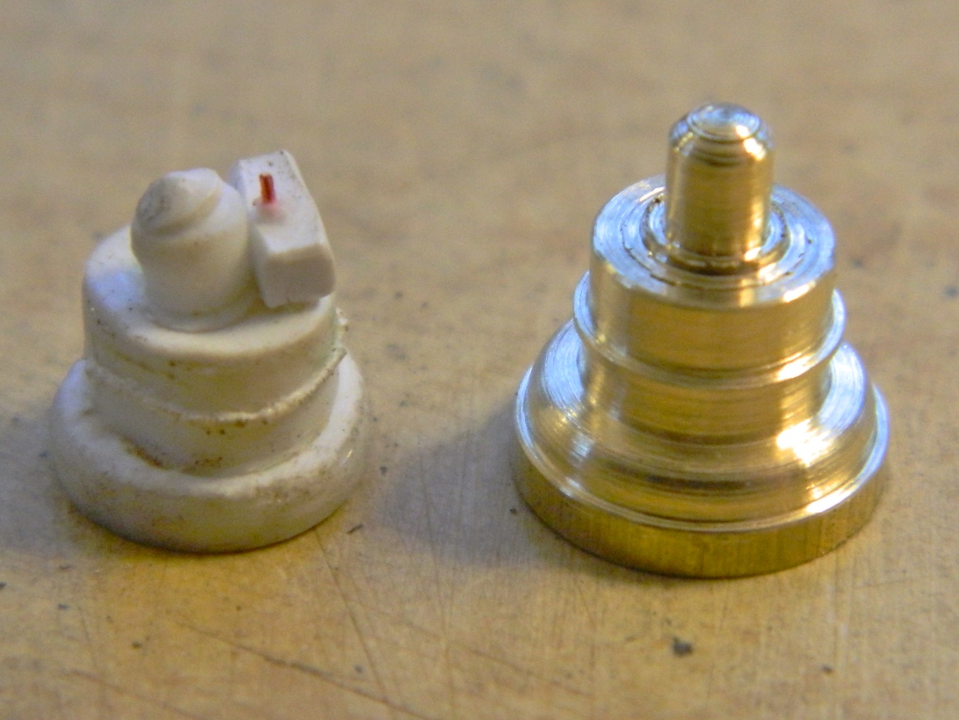 Originally I had made the master out of styrene. I guess I should have known better because I tried to take a short cut (yeah, I know…) around replicating this assembly. I ordered a reusable mold making compound from Micro-Mark. It gets heated in the microwave to turn it liquid (or close to liquid; when molten it has the consistency of cool honey). As I found out, thin styrene doesn’t like heat and the styrene master I tried to use this molding compound with caused the master to deform the styrene slightly (by melting…how odd for something heat-related). So I made the blower assembly out of sterner stuff. Brass.