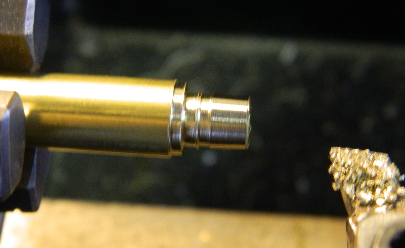 I purchased a 3/8″ brass rod from Online Metals, chucked it into my lathe, and turned the body: