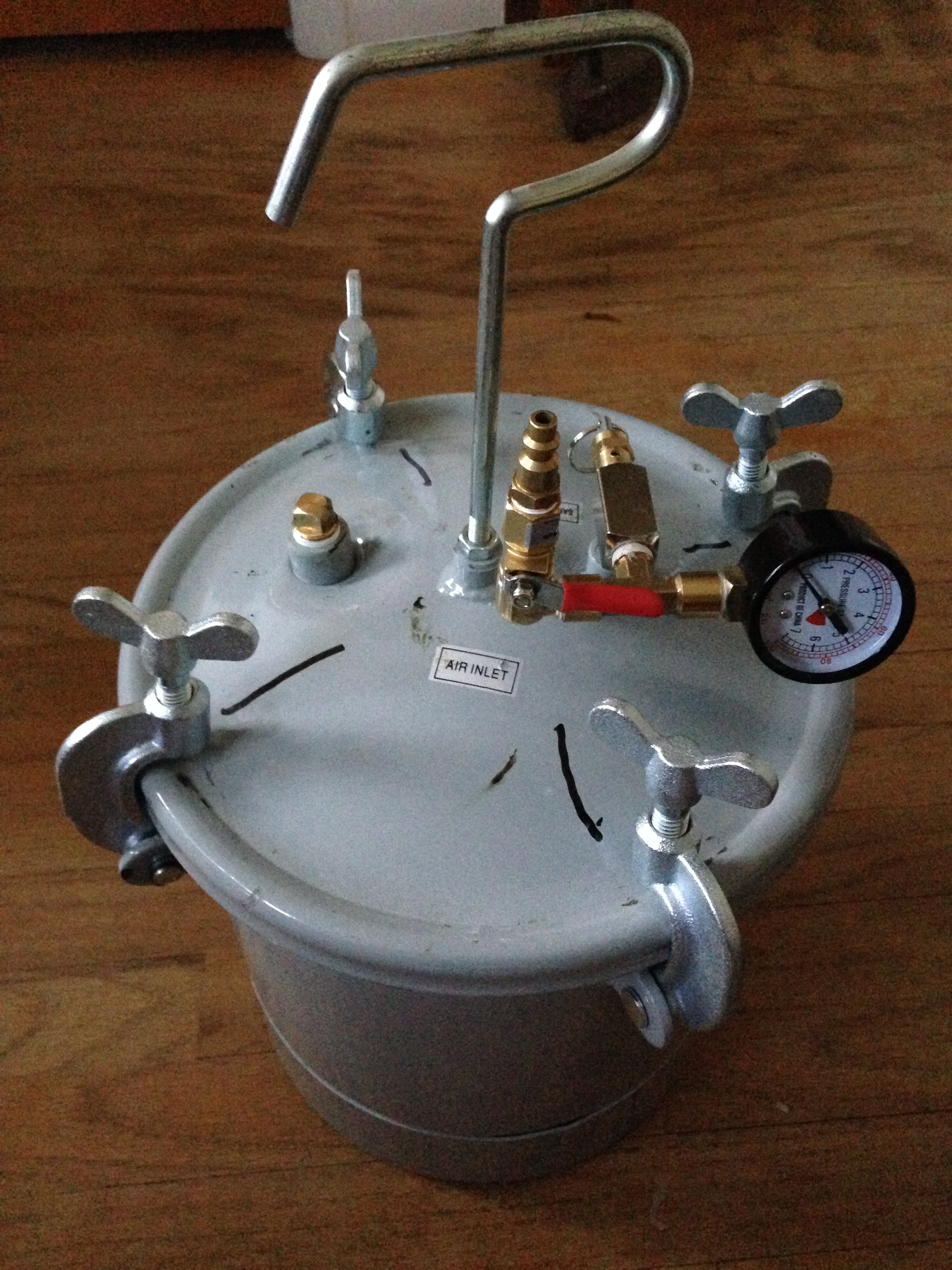 Pressure pots can be expensive. Once again, Harbor Freight had something reasonably priced that looked like it would do the job; their item number is 66839 and purchase of it will get you one of these: