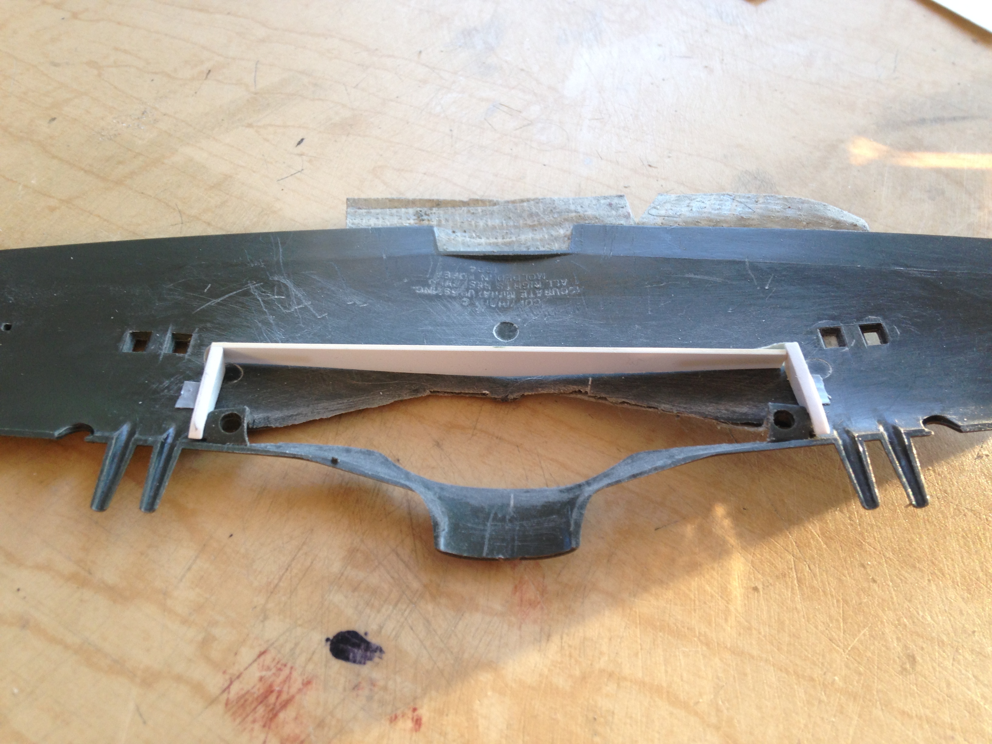 With the plastic cut, I checked it for fit using the rib as the terminus: