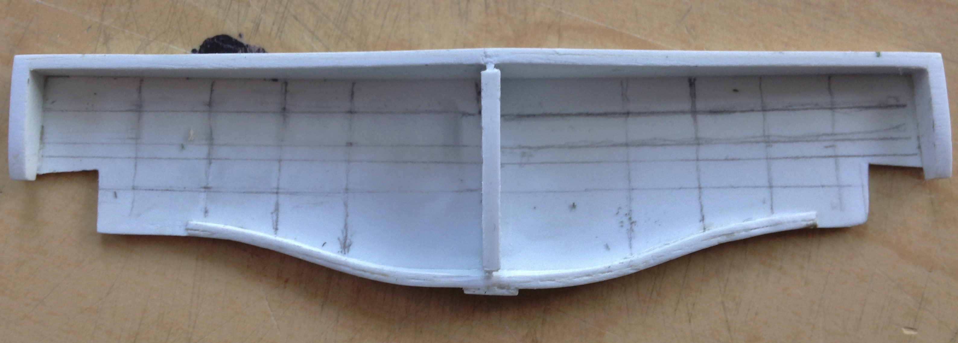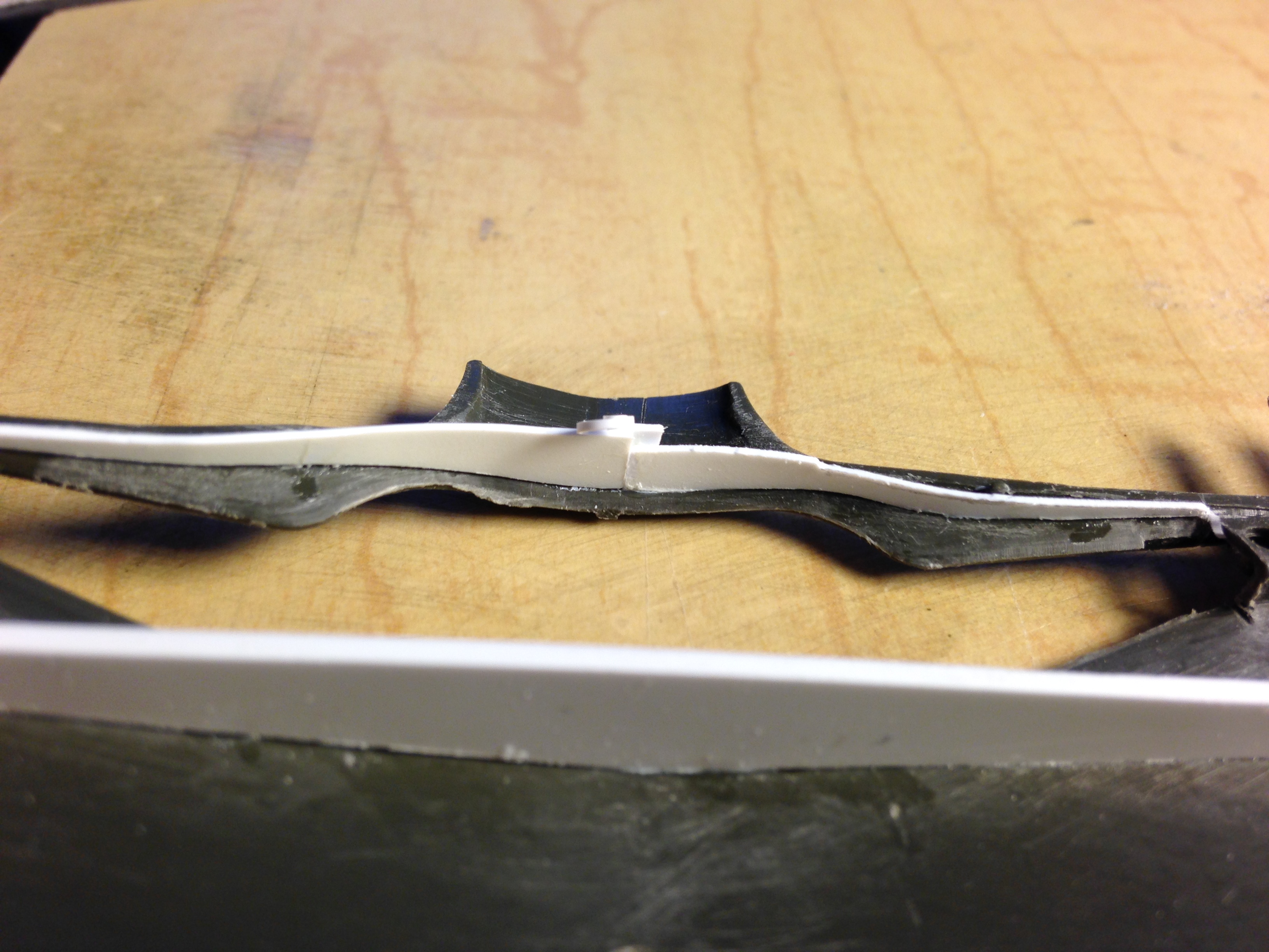 With the spar laid out, it was time to fit it into the wings, which started by shaving down the lip on the inside surface of the upper wing sections that have to encapsulate the spar: