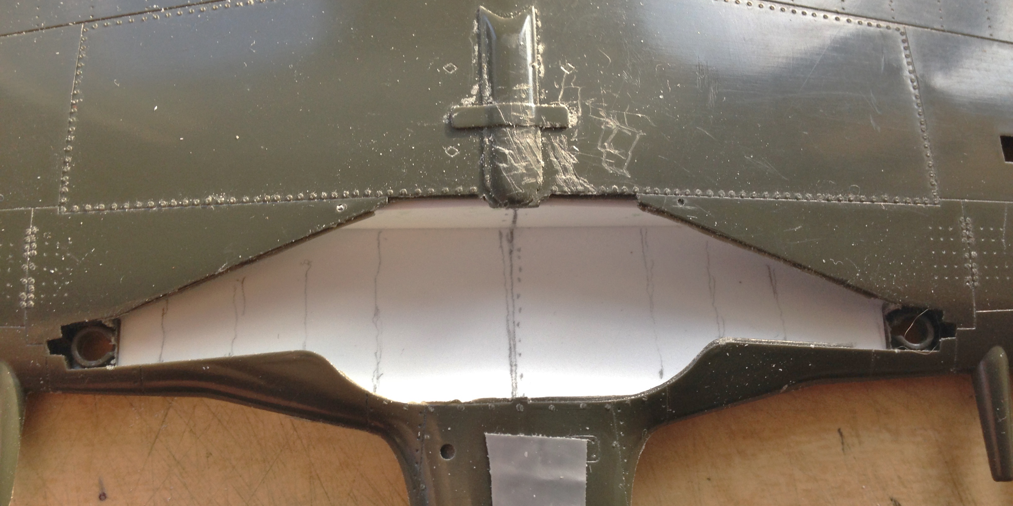 The stringers on the Mustang have ridges and I replicated them using lead wool: