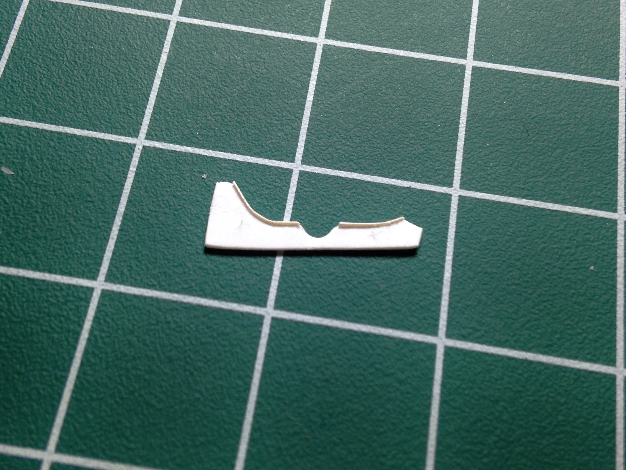 I cut the ribs out of .015″ (.381mm) (still too thick, scale-wise, but more realistic in terms of getting that space to fill with resin later) and checked how it works…which it does: