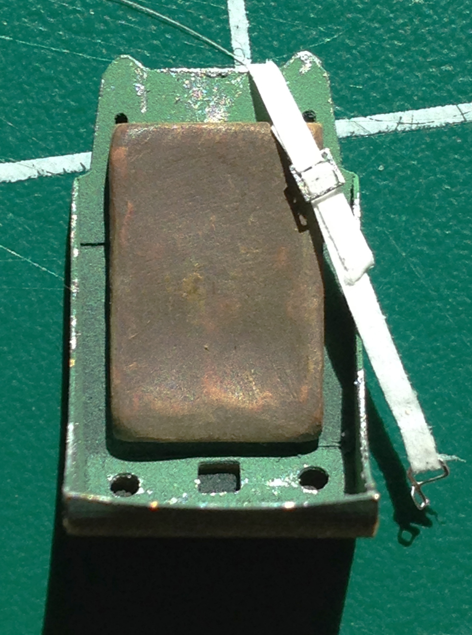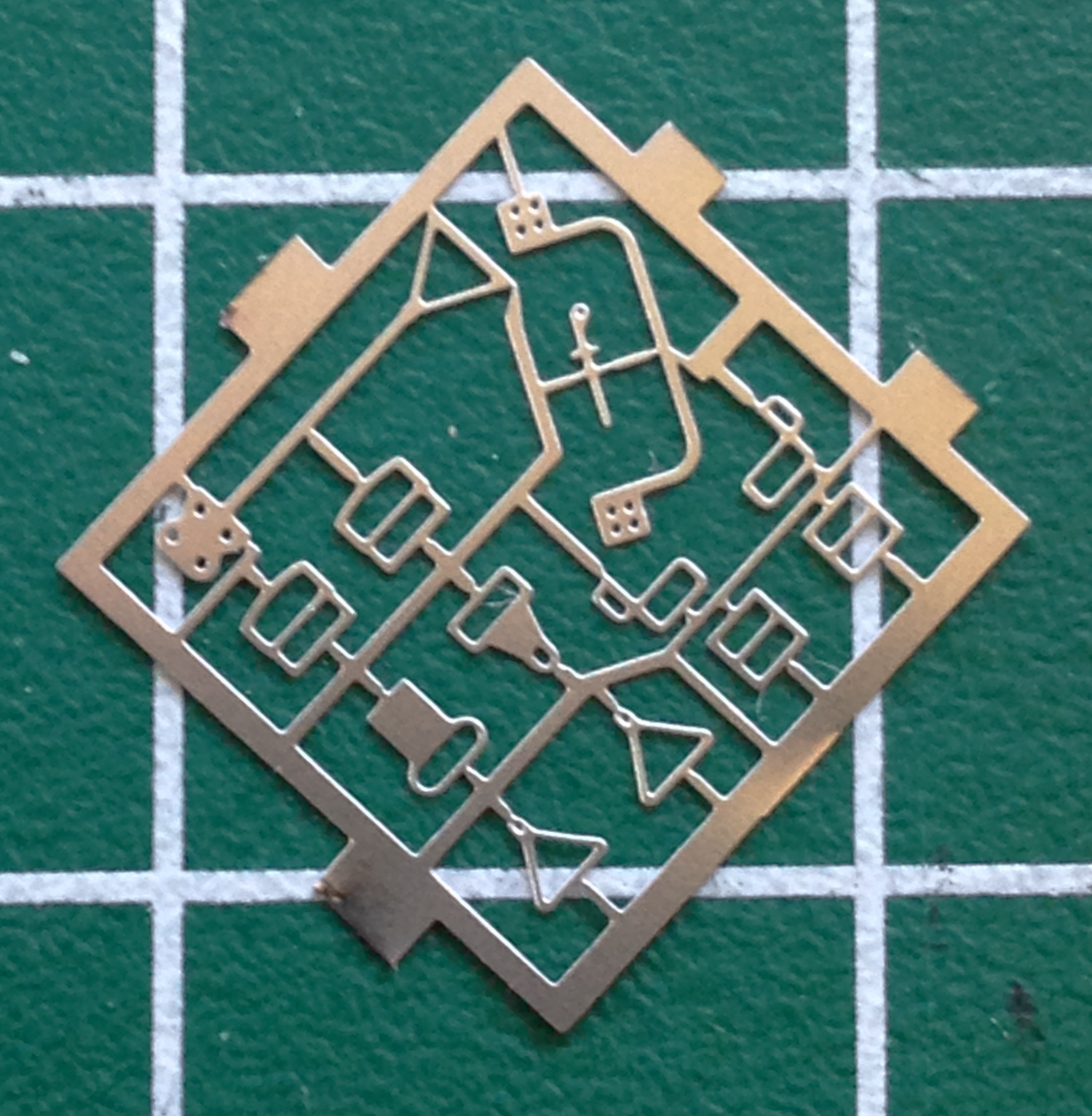 Once upon a time, there was a California-based company called Model Technologies that produced some very fine photo-etched details. I was fortunate enough to pick up a few of their items way back when because they have since gone out of business and if anyone has picked up their line, I can’t find them. What made MT’s stuff so nice (other than the fact that it was a damned good product) was that they used stainless steel for many of their products. This is a good thing because I’m using MT’s seat belt buckle set and it’s VERY SMALL. Brass of this size would be more fragile than useful. Stainless steel is strong enough to survive the manipulations required of them: