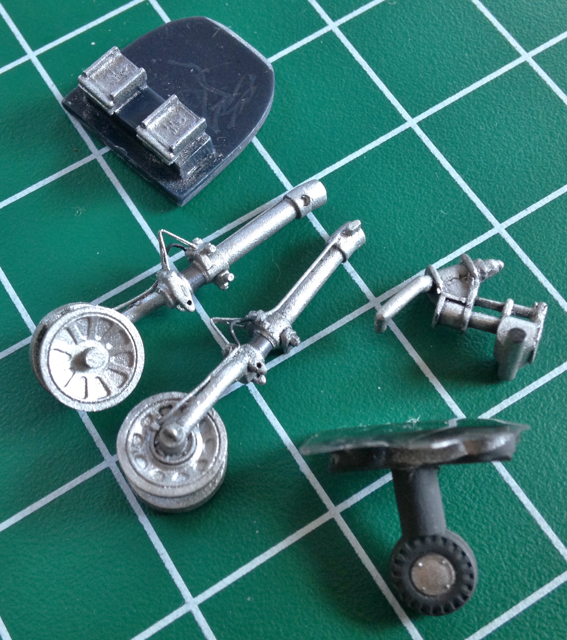 At this point what’s driving the build is the need to shoot parts with aluminum paint. The end goal is to have everything painted so that I can join the fuselage halves. The rear landing gear strut needs to be painted aluminum, but so do a few more parts. So the next step is to get everything that’s going to be painted aluminum detailed and finished, and that starts with the main landing gear legs.