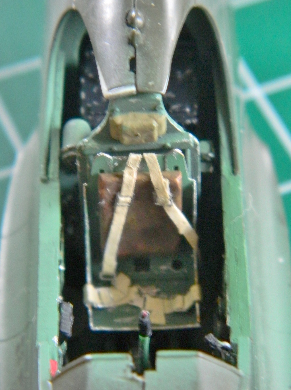 The last details to paint were the radios and those were done in semi-gloss black and chipped paint added, the seat and front bulkhead (with rudder pedals) were then glued into position: