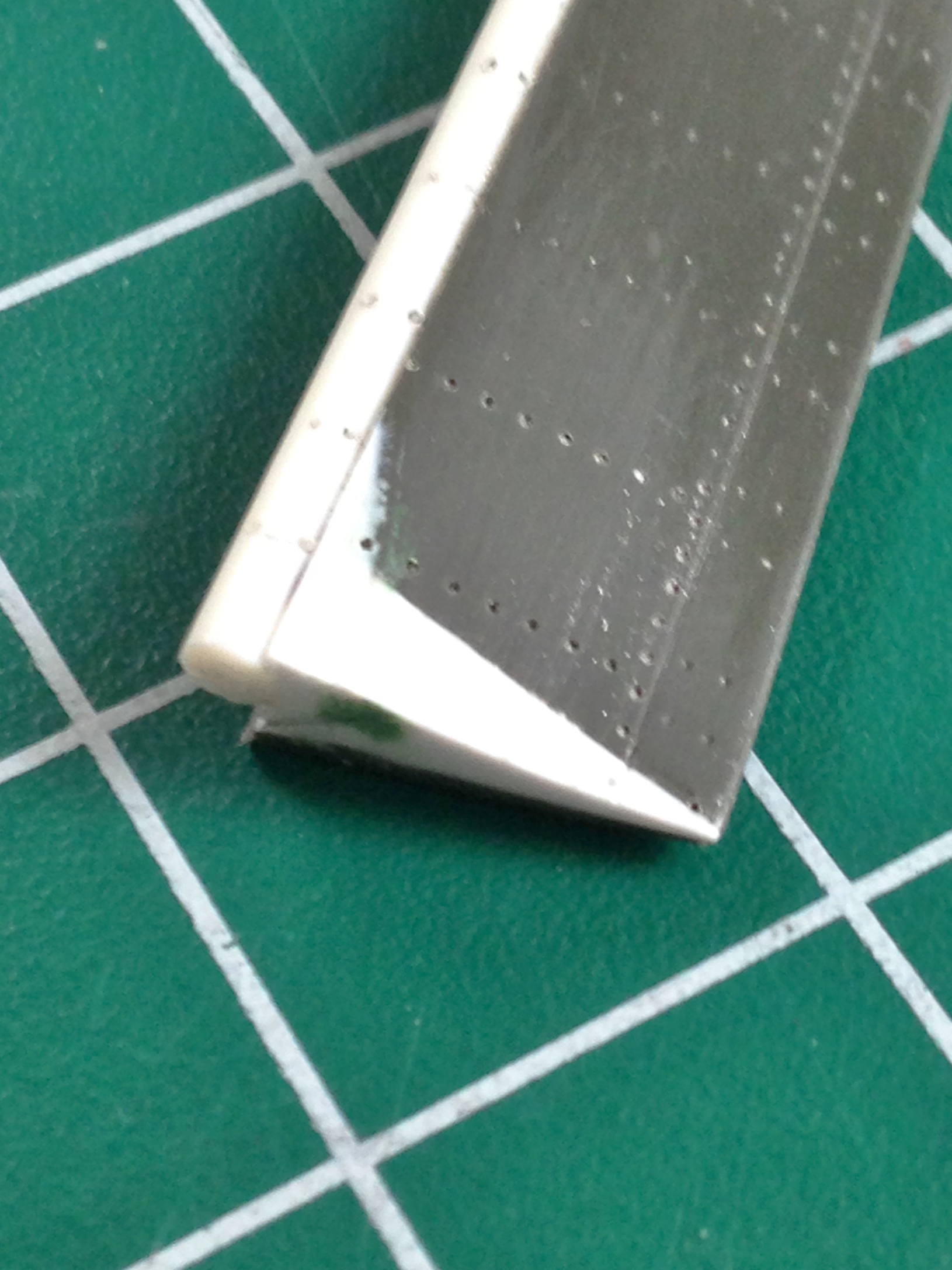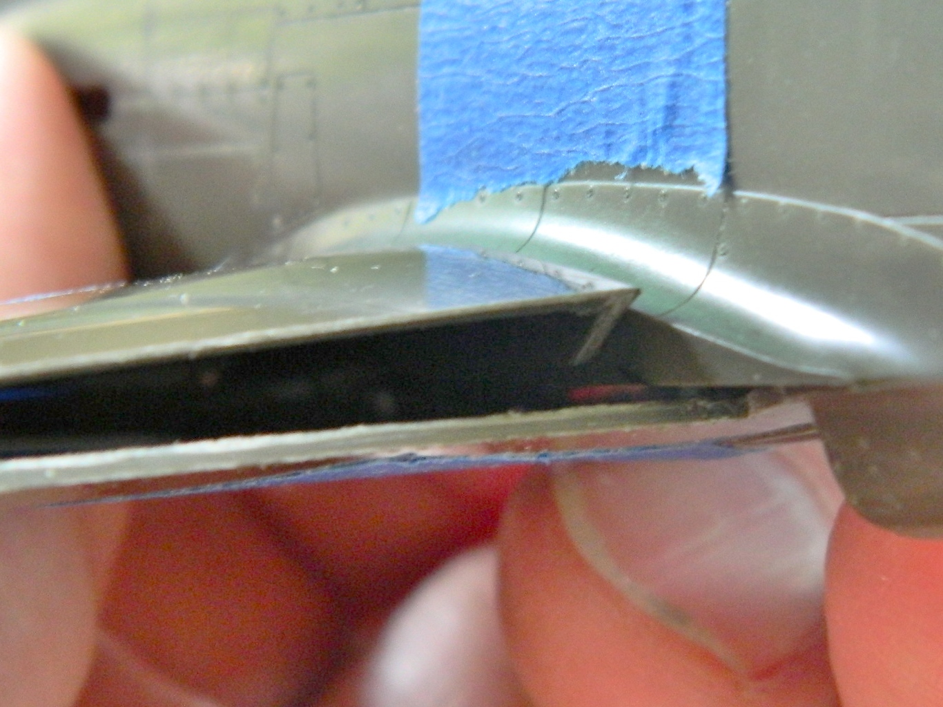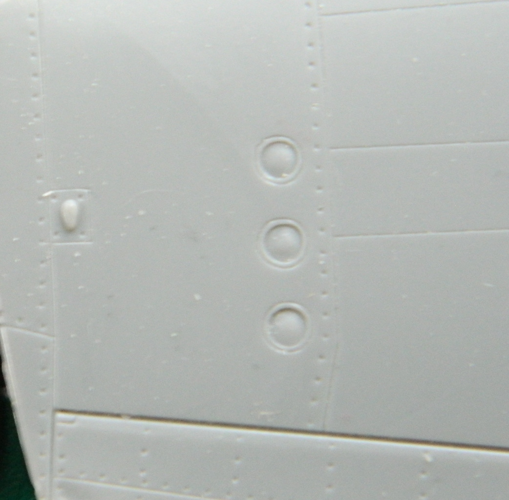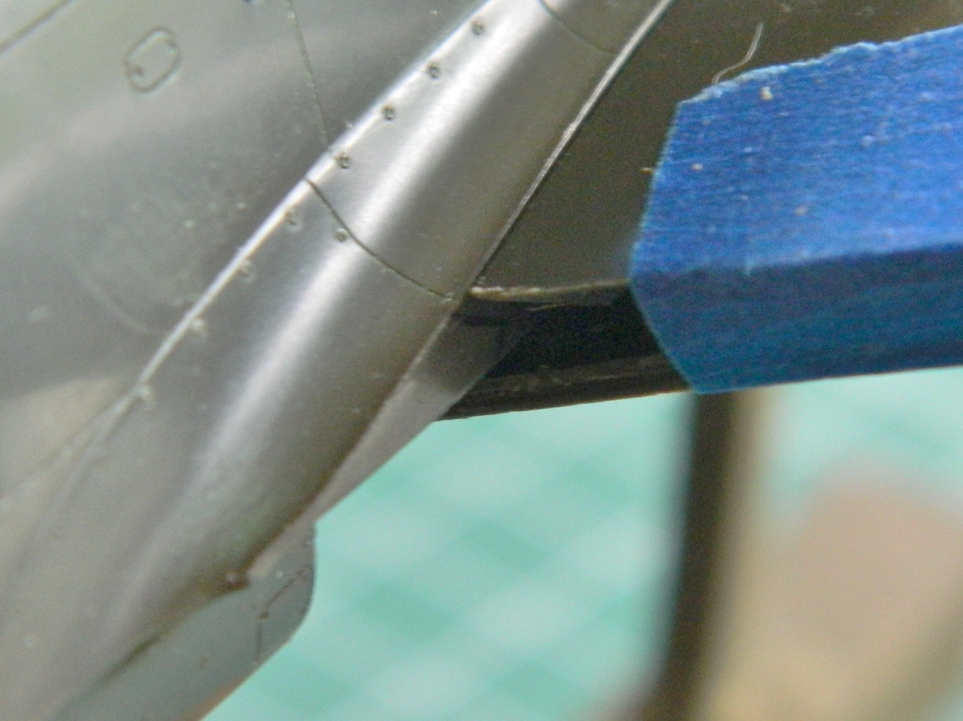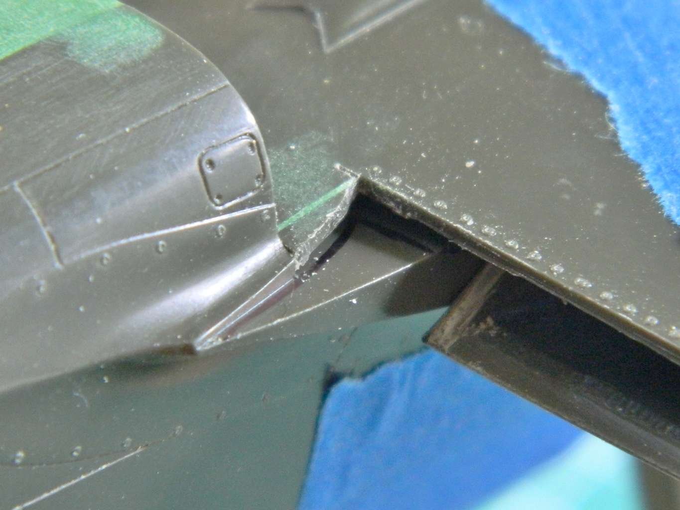 With the wing tops in place, I could now finish fitting the curved section of the flaps and trim the lower surfaces back so that they droop at the correct (looking) angle, then I added the detail(s) that I lost while puttying the scratches, sanding the added plastic, and added the rivet detail: