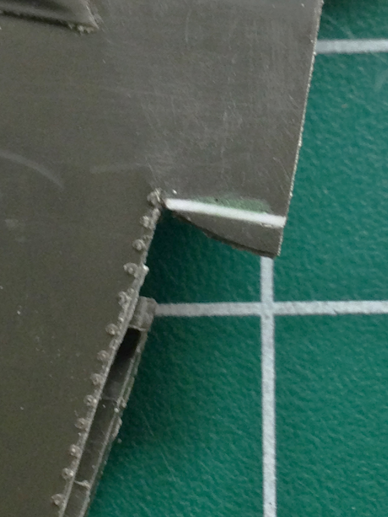 I added scrap styrene and started removing the excess until I had it where I wanted it, then I did the same thing (more carefully with the Dremel) with the other flap and both put back and added surface details:
