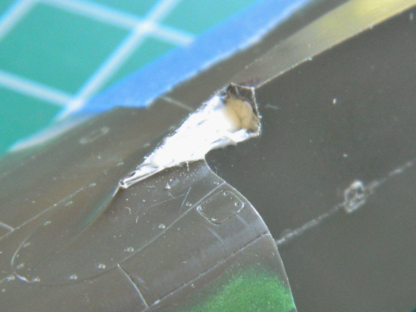 In the process, and as I expected, I cut completely through that area of the fuselage. I used my homemade structural putty to fill the voids: