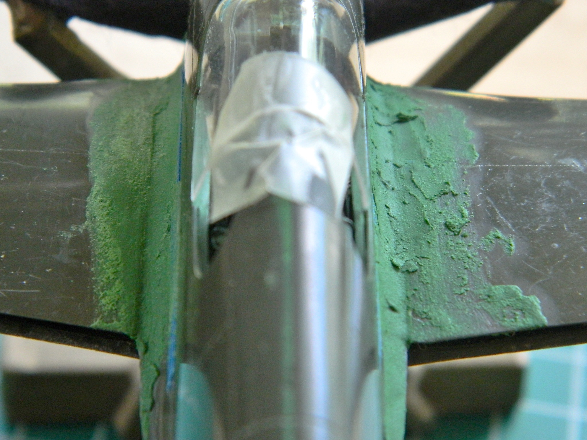 Accurate Miniatures, the company the produced this kit, has a reputation for well-fitting kits. Perhaps it was because this kit sat in a hot attic for 13 years and things warped/shifted, but the fit on this kit ain’t all that grand. Substantial putty is going to be required to get the proper fit, so the first coat of putty has been applied. Once that sets up overnight, I’ll begin the sanding process that I’m sure will lead to the next application of putty.