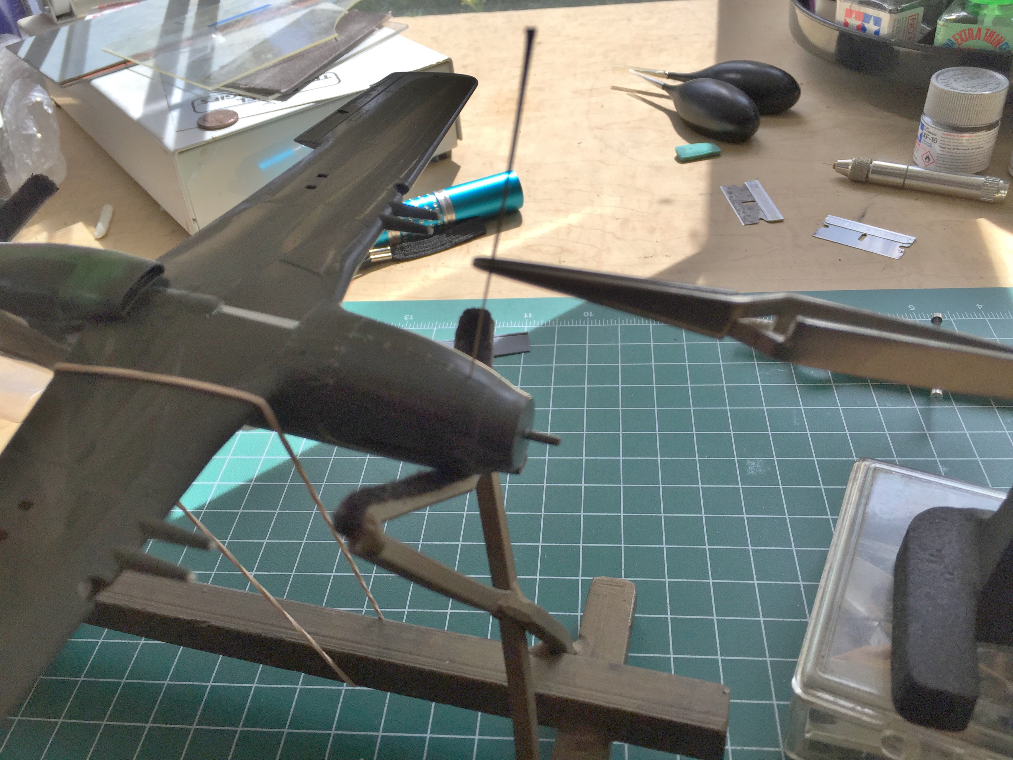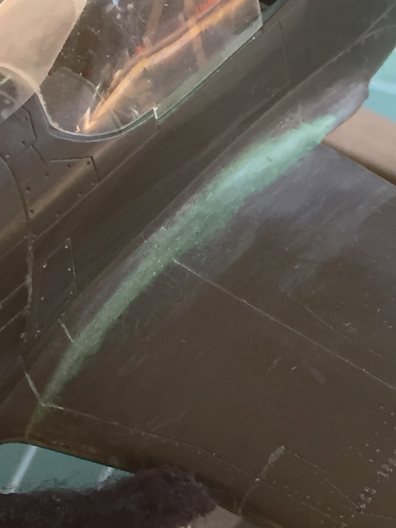 Probably because of the previous sanding under the nose, the fit of the wing-plane also needed putty and sanding: