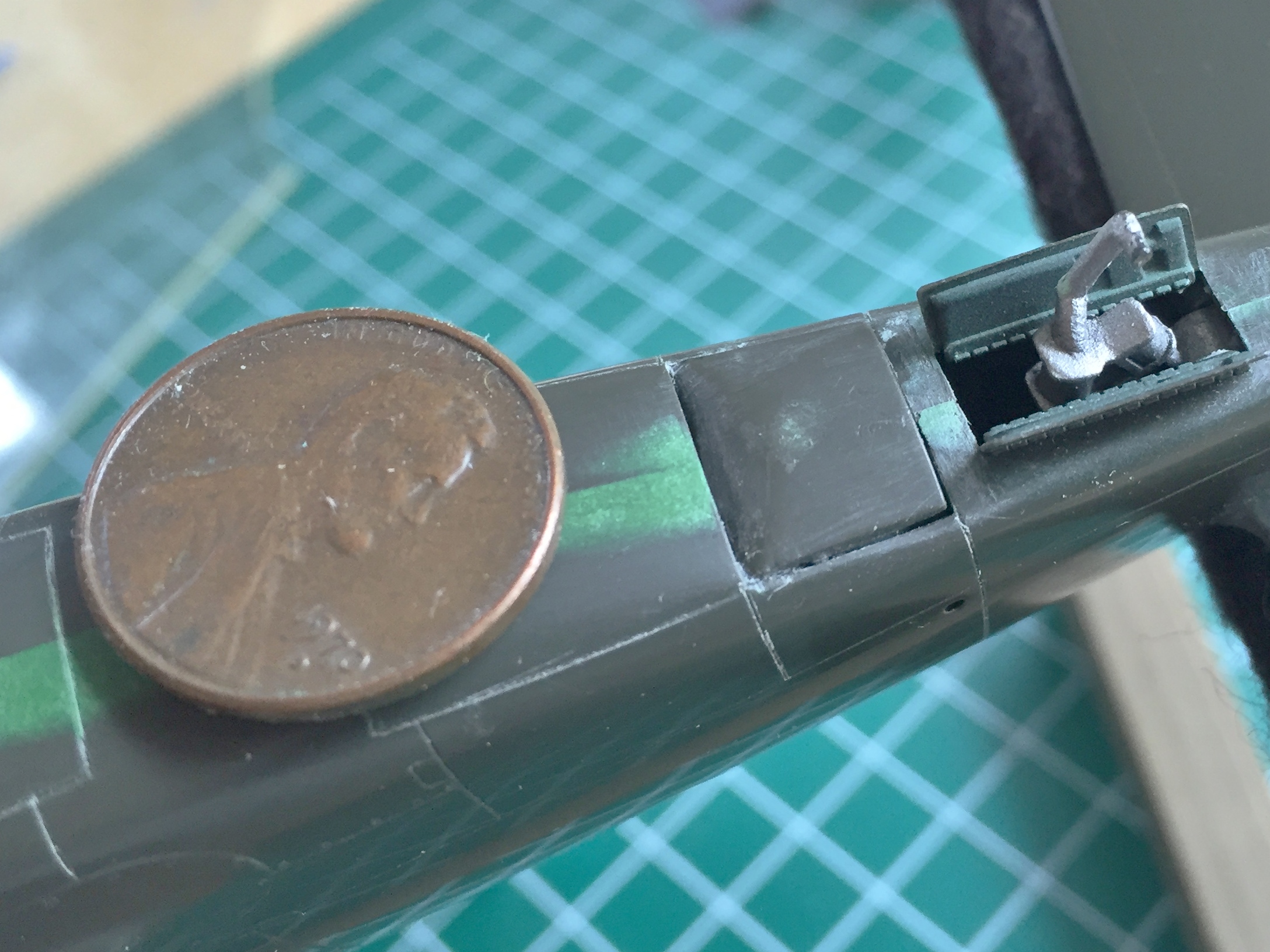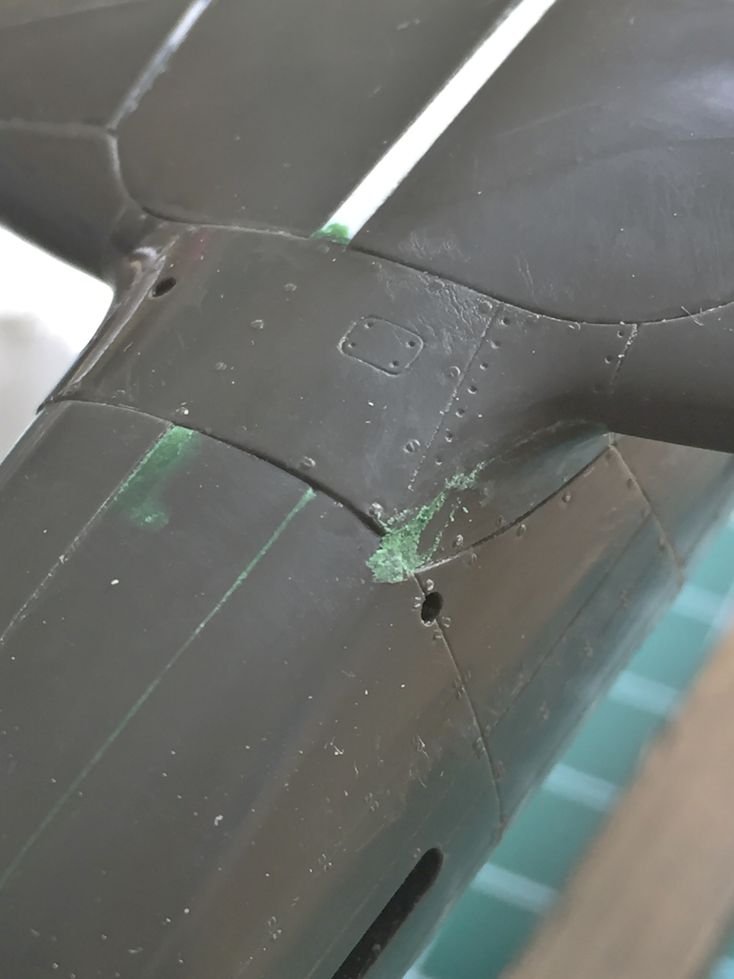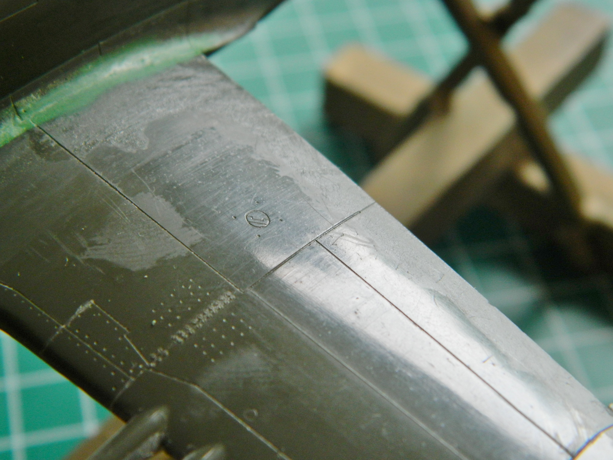With the stubs in place, careful sanding was needed to bring them closer to the surface without assaulting more panel lines: