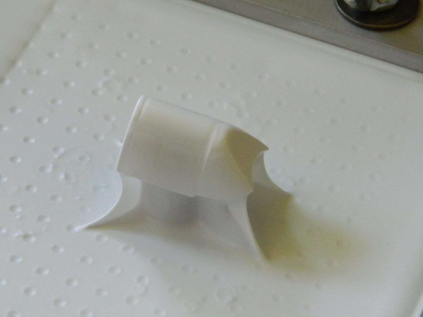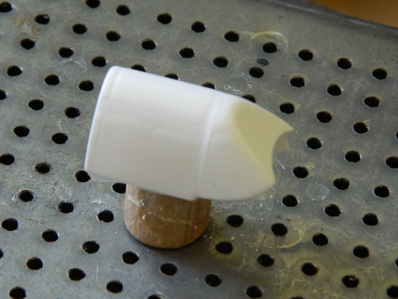 Well. Either my memory is faulty (and if so, this instance would certainly not be unique) or the formulation of accelerators has changed. I don’t remember accelerator dissolving the surface of the plastic…and that’s just what happened. So after putting the model back down (from where I was ALL wound up to throw it against the wall), I sanded down the texture created when I tried to wipe off the excess accelerator with a paper towel: