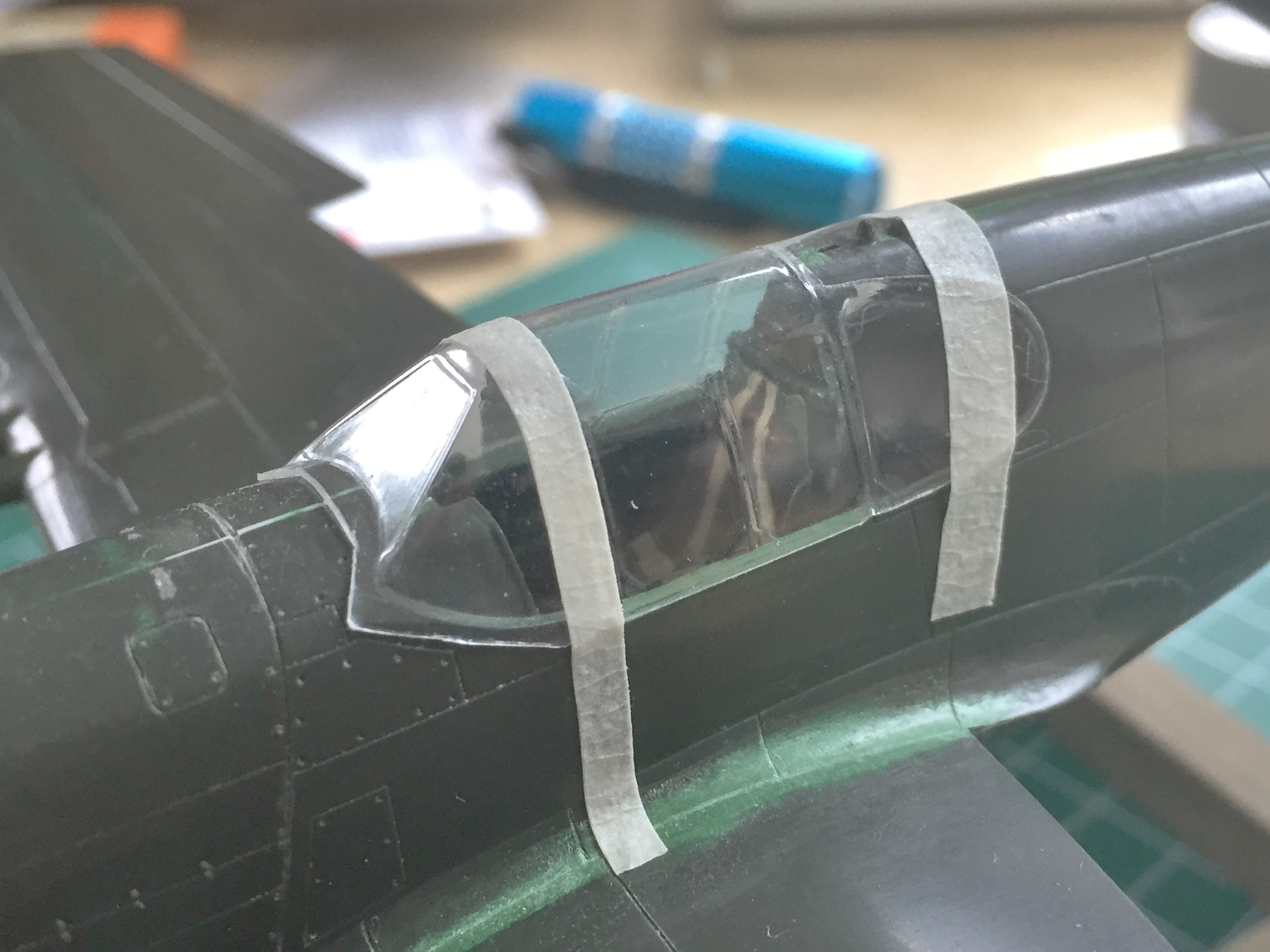 I left a flange on the front canopy part for gluing. The right-side canopy as well as the right side rear window won’t be separated, but the top and left side canopy will. I haven’t cut them free yet because they work well to locate the rear canopy windows in their respective openings. At present the idea is to glue the canopy in front securely down using superglue (with the requisite crossing of body appendages that the glue doesn’t fog the clear parts), then extending the superglue down the right side (which isn’t going to be opened, as per the way these aircraft were used in the field), and around both rear windows. I’ll seal the bottom left side canopy with white glue to keep any paint from blowing into the cockpit.