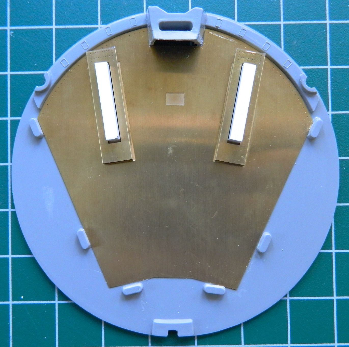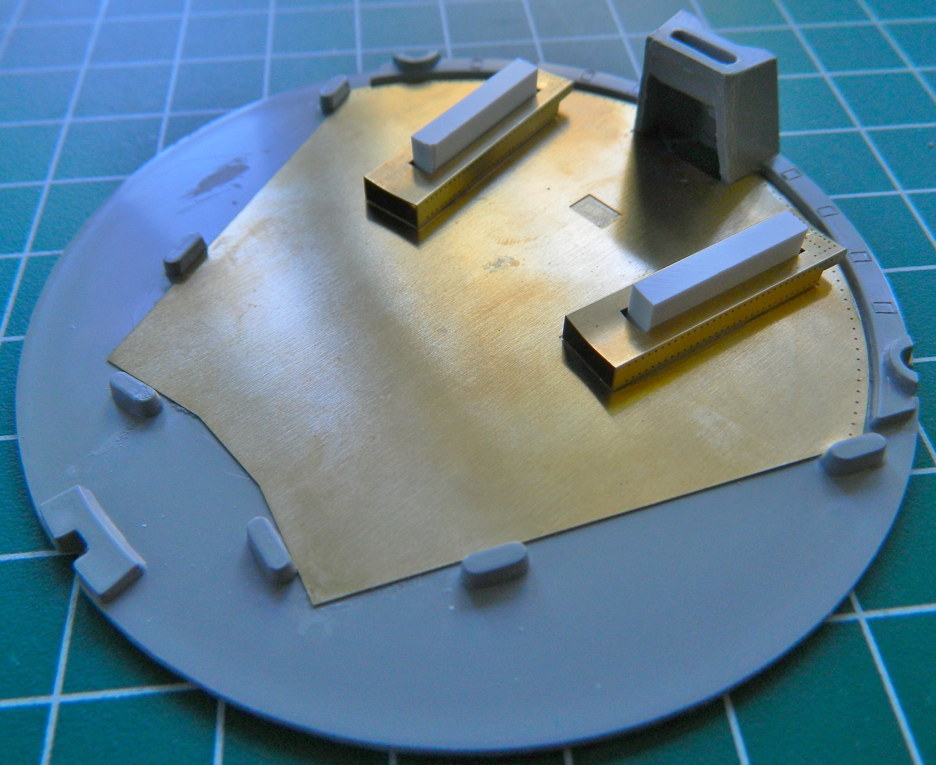The first one went together easily using superglue; no solder. So I made the second one and dry-fit them to their mounts (I’ll attach them permanently after painting them):