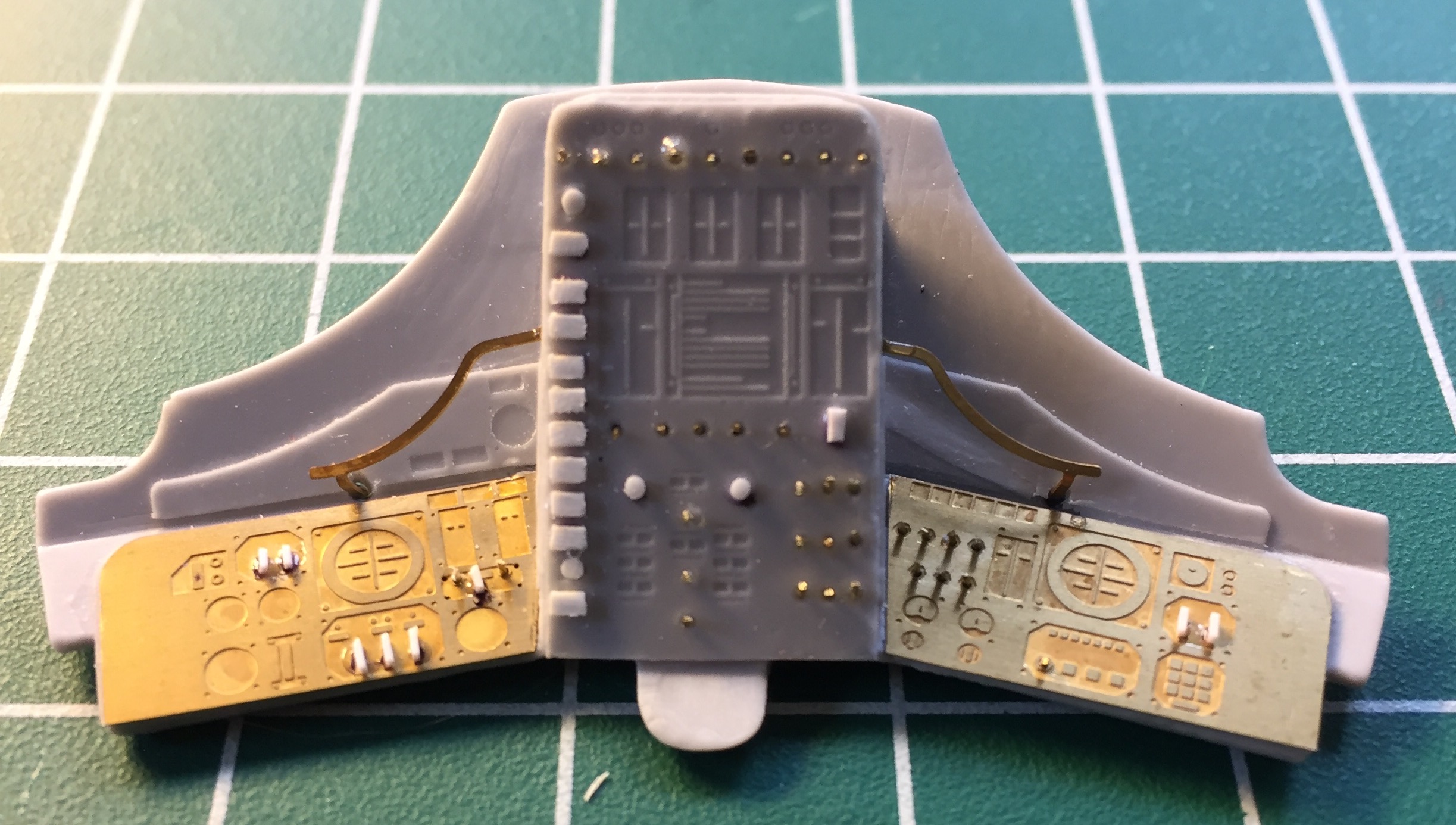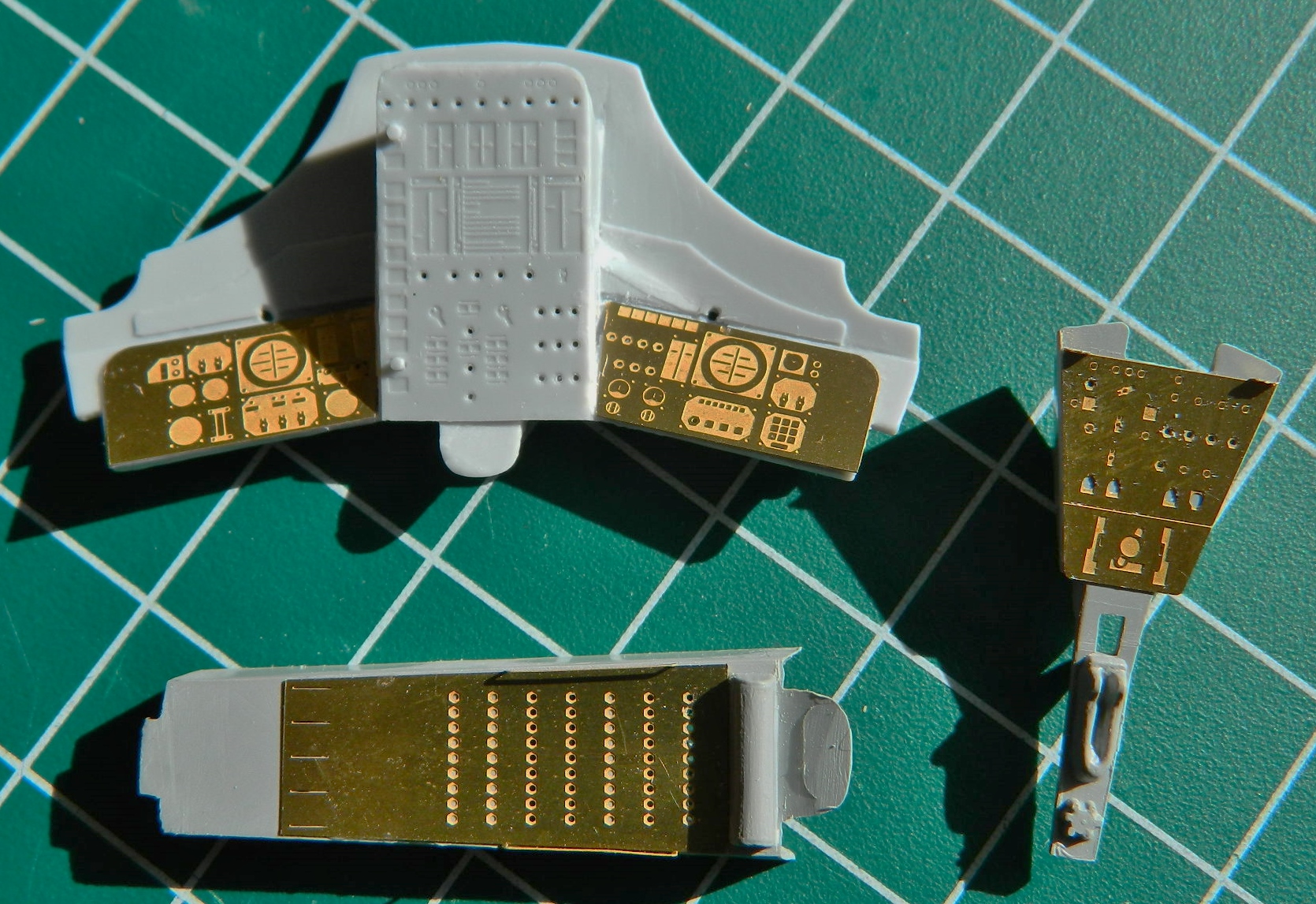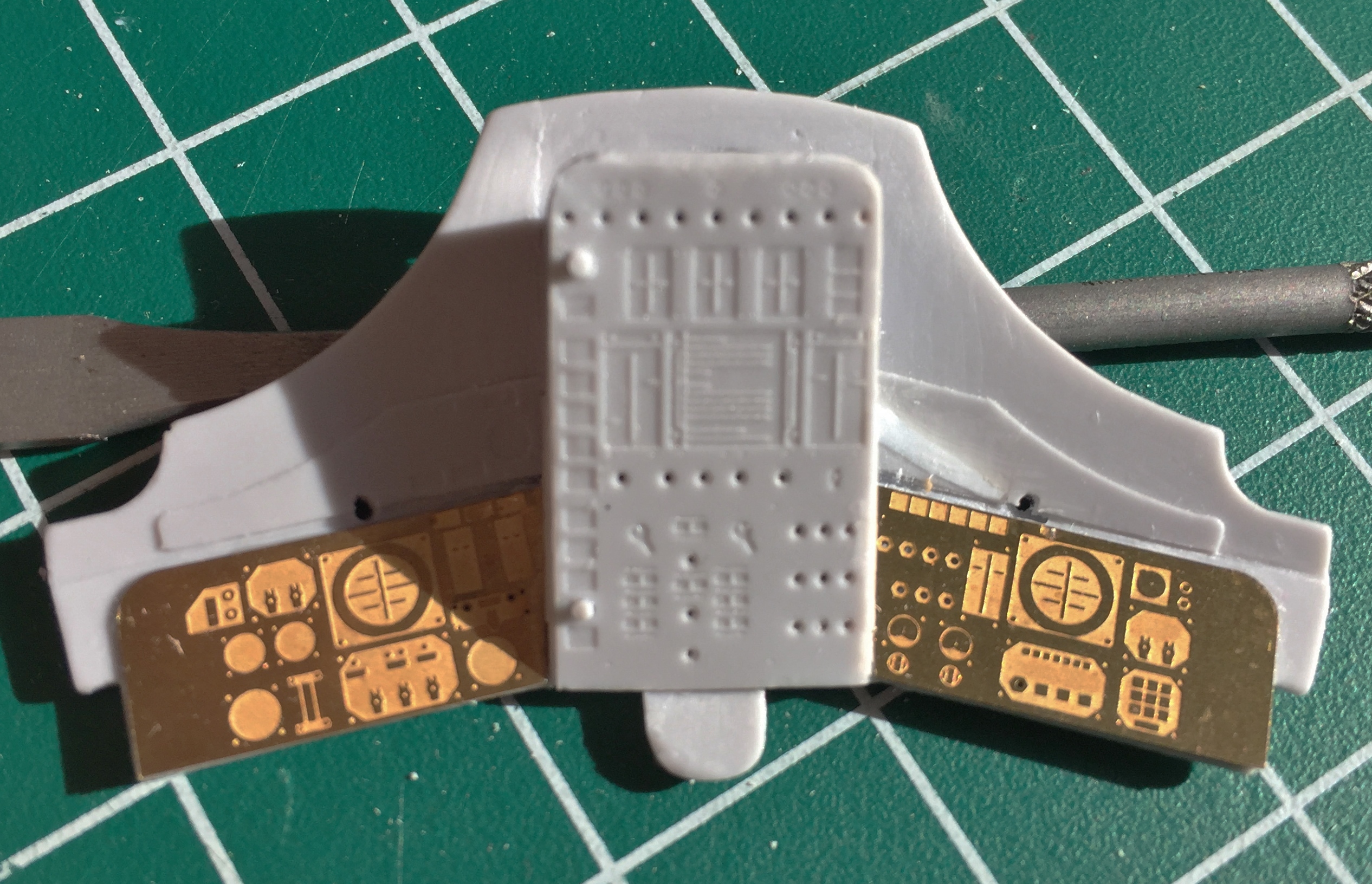 Since the surfaces of the resin and PE parts are different, I used both PE on both instrument panels for commonality: