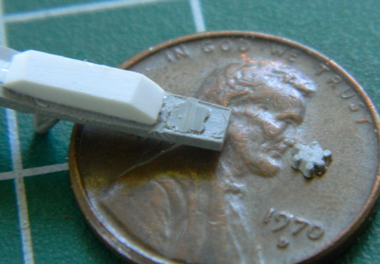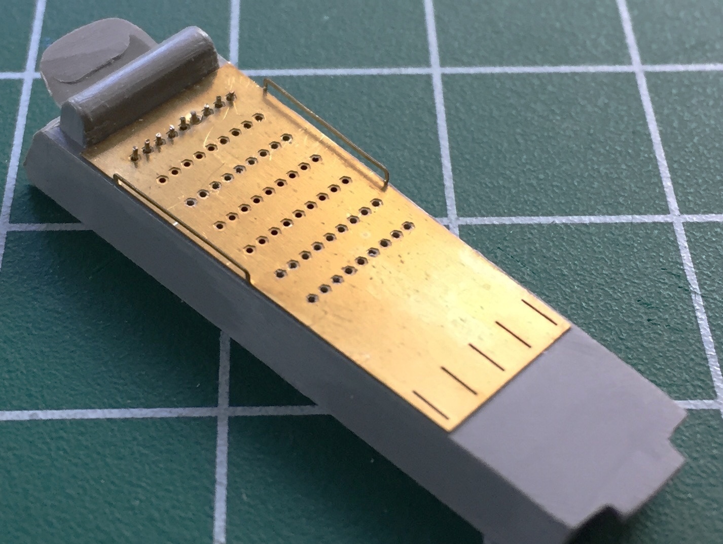 Since there are two panels, I did that twice. There is a larger selector knob in one of the panels. I used styrene rod and a tiny bit of scrap to make that knob: