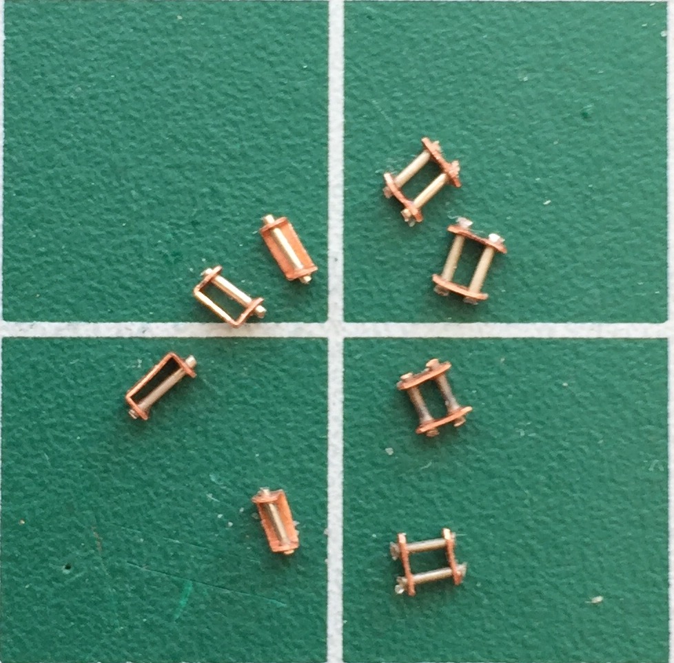 The next major detail to be added are the harness straps. Because of their location in the finished model (directly in your face), and because there are NO aftermarket parts for these, all the hardware had to be scratch-built. First to build is the buckles which I made from .005″ (1.27mm) copper shim stock and 24 gauge wires.