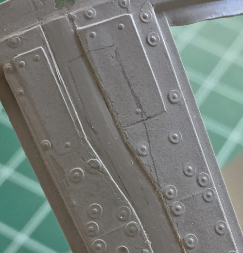 There are a lot more inaccuracies in this area (and over the entire exterior) but what I would have to do to fix them is staggering. In essence, I’d have to take surface molds of ALL the exterior corrugations and re-skin the whole thing…and even then there would still be inaccuracies. Not worth it. This will certainly be good enough: