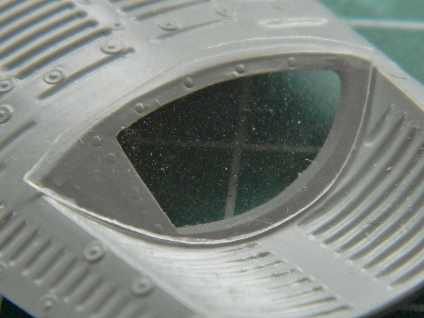Gluing the styrene to the hatch required care. It would be very easy to have the glue move into the area I needed to stay clear. I got the first clear part in place with no problem. However, true to my pattern, doing this again presented problems, the glue migrated to the area that needs to stay clear, and the only way to fix it was to remove the clear plastic and start over: