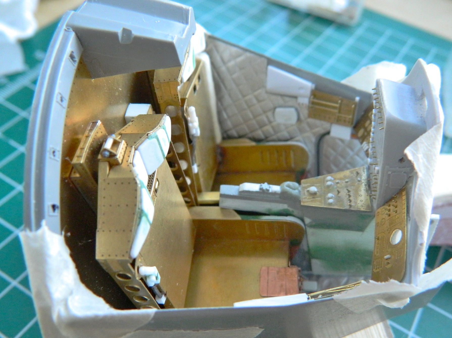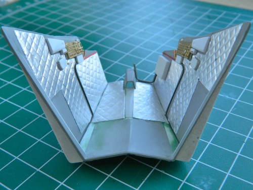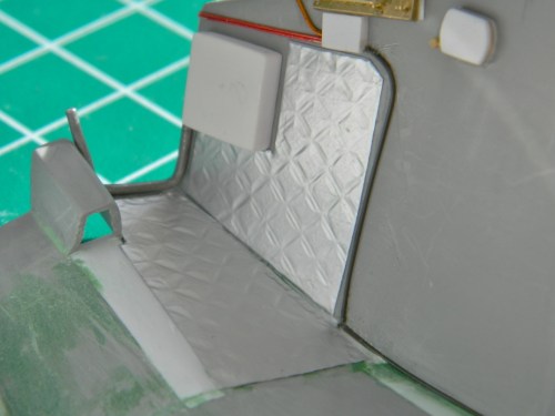 There were quilted pads lining the cabin. I replicated that with heavy (very heavy) aluminum foil that I tweaked for detail and superglued to the cabin walls and floor: