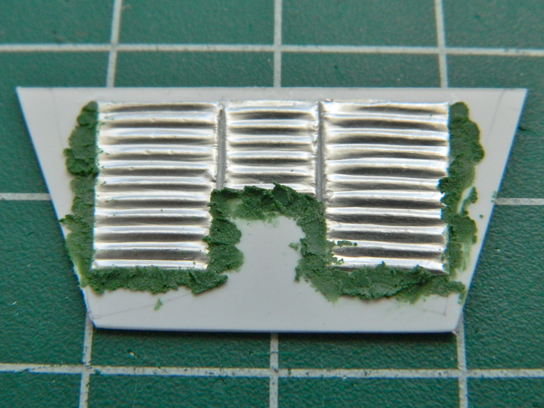 While I was supergluing aluminum foil, I added the corrugations to the front interior bulkhead: