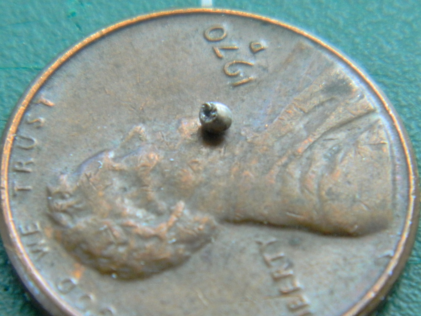 There is a round knob that sits on top of the stalk. It’s large enough that a blob of white glue or several coats of superglue wouldn’t work. Then I remembered what happened to solder if it wasn’t touching a surface when the torch hits it. It forms a ball! Okay…let’s try that! The first one was too large, the second one was just right: