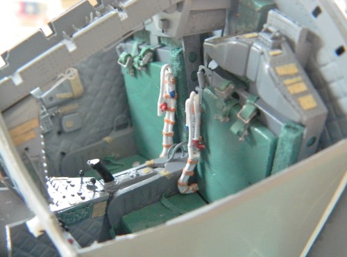 The last parts I had to add before I could button up the capsule were the hatches. I used some styrene tube to make the front hinges [As an aside, I am NOT AT ALL PLEASED with how the hatches hinge. But short of reworking the corners of the instrument panel to an accurate configuration and making more accurate hinges, that’s what I’m stuck with.]: