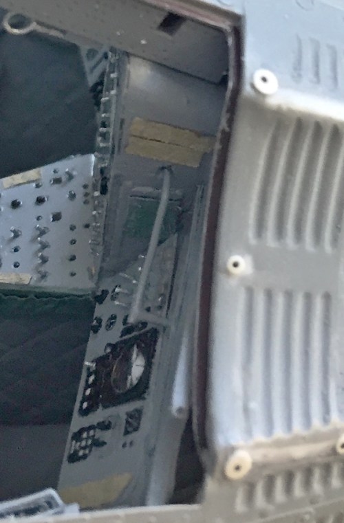This part is supposed to represent the horizon sensor. The bubbles were large enough that putty would not have fixed them. Instead I opened the bubbles so that I could insert styrene to fix them (and subsequent checking of references showed that it’s pretty inaccurate generally; I fixed it to the best of the reference’s detail…which wasn’t enough, but there it is…again):