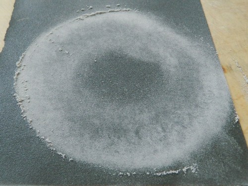 There are two modules aft of the capsule. The closest module is the section that contains the de-orbit engines (aka, retrorockets), and the module furthest from the capsule is the service module where fuel cells, batteries, oxygen, and the like are contained. The end of the service module wasn’t flat, so I placed a sheet of 220 grit sandpaper on the table and sanded the high spots down:
