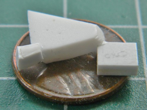 And here I encountered another disappointment. Yes, whoever built the masters for these parts did an adequate, NOT good, job. The OMS parts that go on the outside of the retro module are too tall. References show they should be half the height than what was provided in the set. Also, though I am not a professional mold maker or resin caster, at least I know that resin casts better and denser under pressure. This idea had not occurred to whoever made the molds and poured the resin into them. The castings are FULL of bubbles, some of which show up in the least opportune places, and the handling of the masters during mold making only left one thing to be desired.