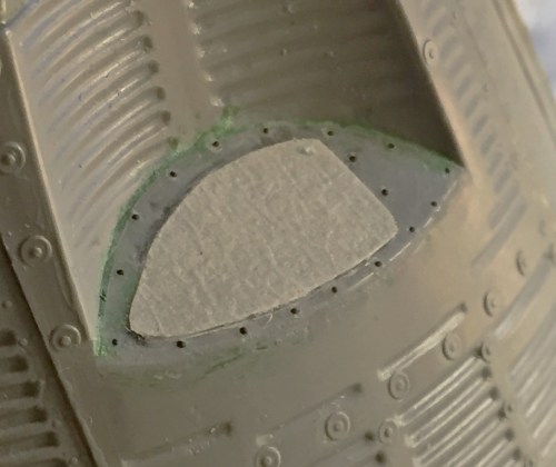 When I put the outer window plastic over the face of the port, I eradicated the surface detail and that got put back using Archer Transfer’s resin rivet decals: