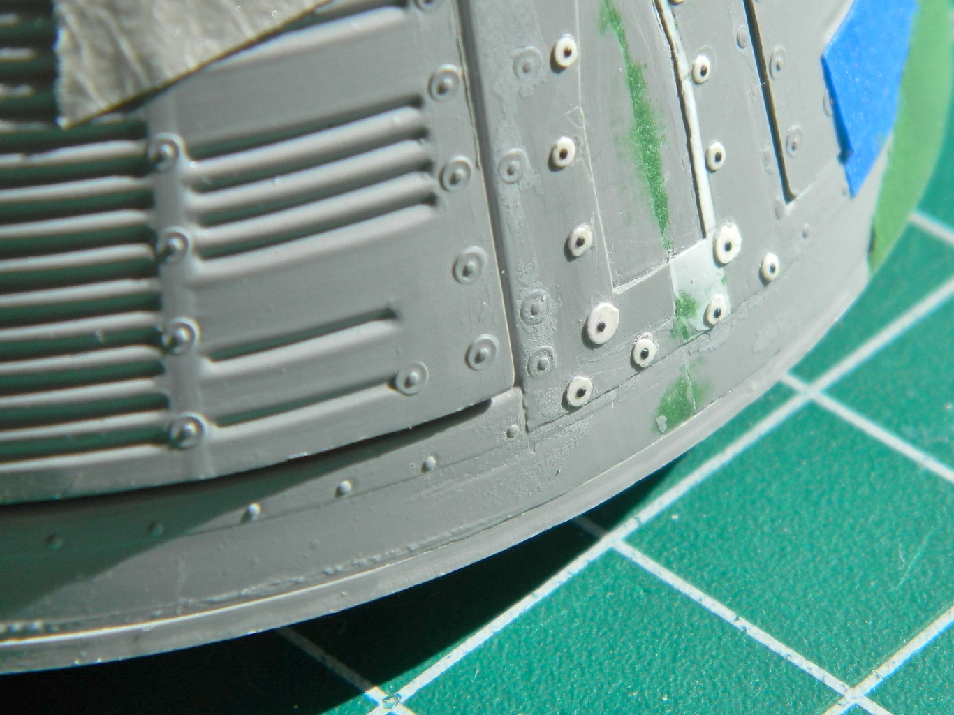 When I put the outer window plastic over the face of the port, I eradicated the surface detail and that got put back using Archer Transfer’s resin rivet decals: