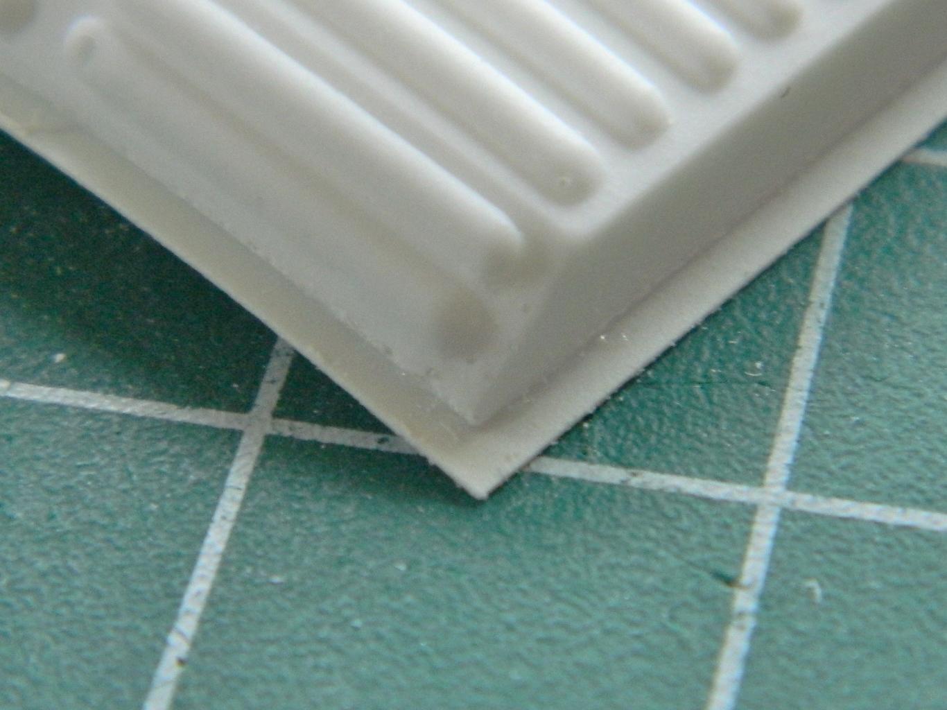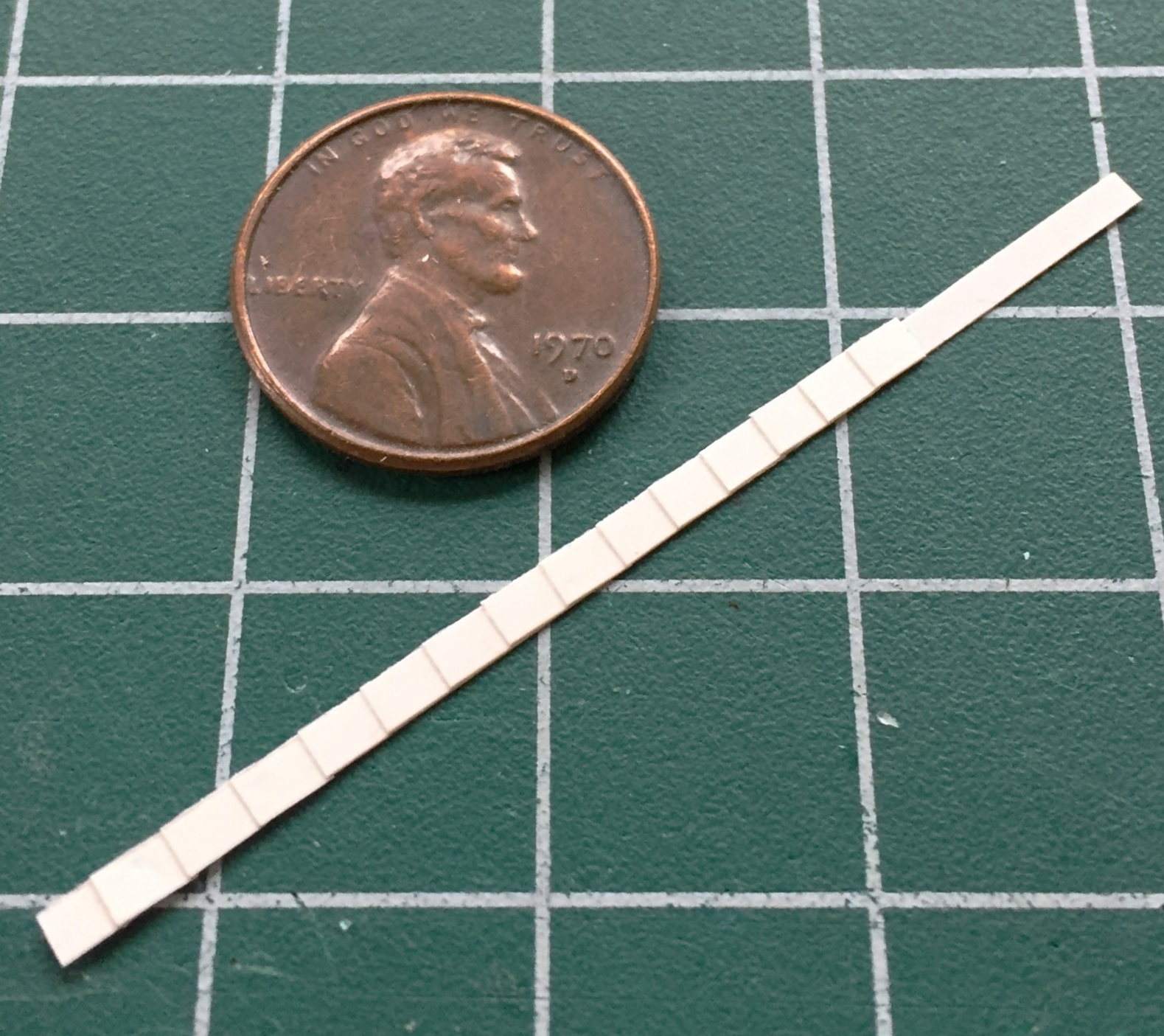 To put the shingles back, I had to make them. A strip of .005″ (.127mm) plastic with more .005″ (.127mm) plastic cut to the dimensions of the existing (and unmolested) shingles had to be made: