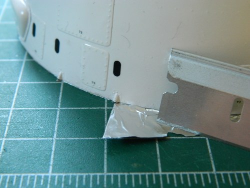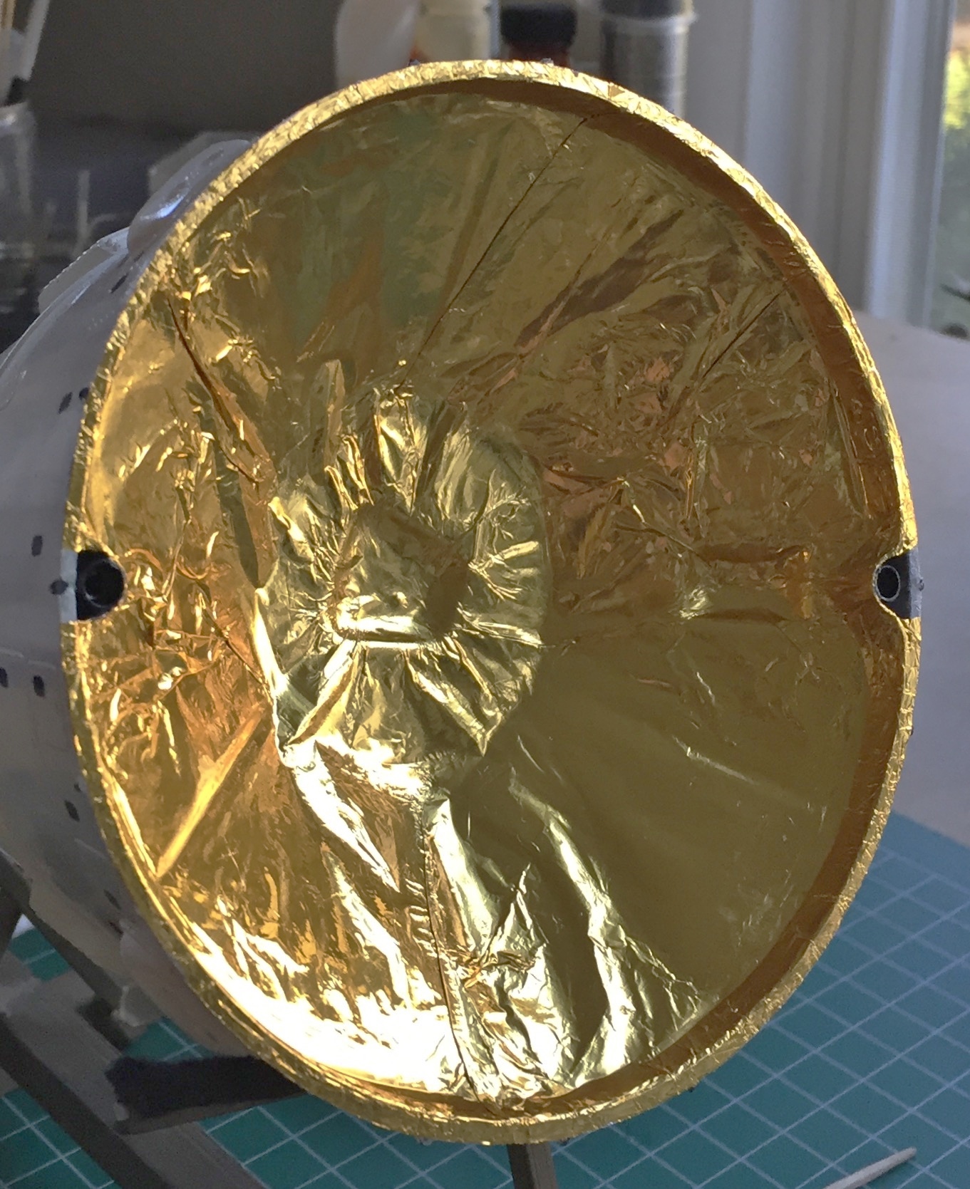I decided to not use the sunscreens which meant that the last part needed to be added was the gold-colored foil used to replicate the mylar thermal shield. The “funny” people at RealSpace Models (the people that made the resin exterior details, and you already know how impressed I’m not with those) gave me just enough foil to cover the support: