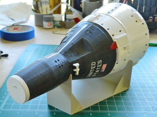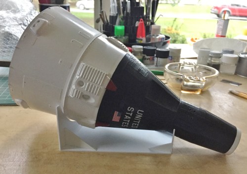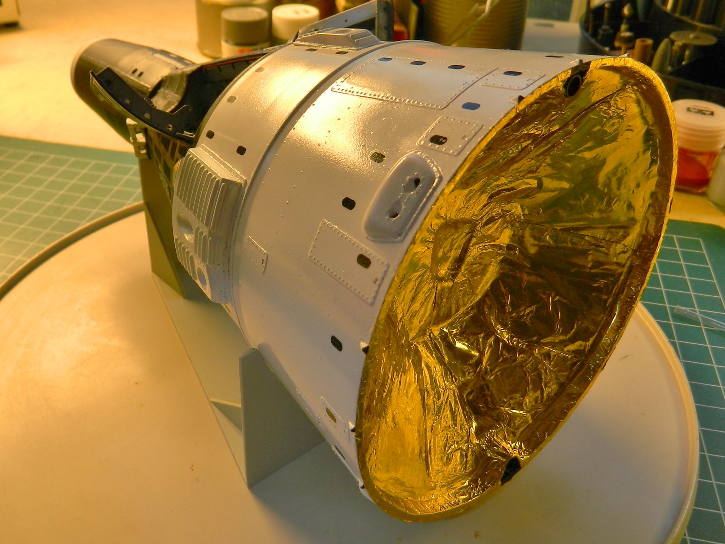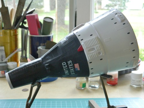 Once my pulse rate dropped back to normal, I touched up the maneuvering thrusters and edges of the service module where the foil didn’t cover: