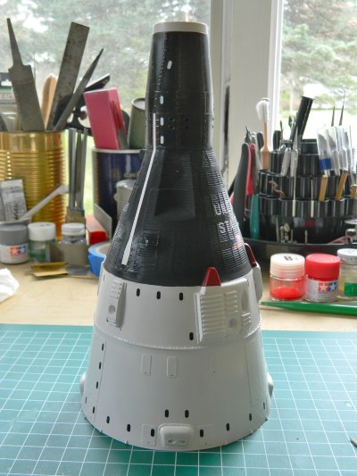 Once I’d done that, I started with the decals that would require the most work to get right. The surface of the capsule is corrugated and I need the decal to fit down into those small troughs and up over the raised details. Decal solvent is what allows that to happen. The solvent dissolves the decals slightly enabling them to conform to whatever surface details they have to fit into and over. Never touch a decal after applying solvent! The solvent really does dissolve the decal slightly and if you don’t touch it, as the solvent evaporates, the wrinkles in the decals’ surface go away and they snug down.