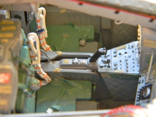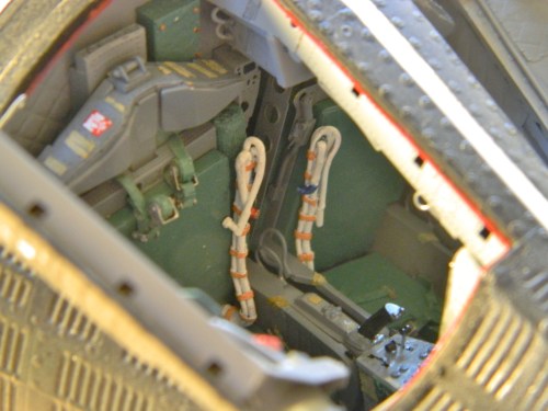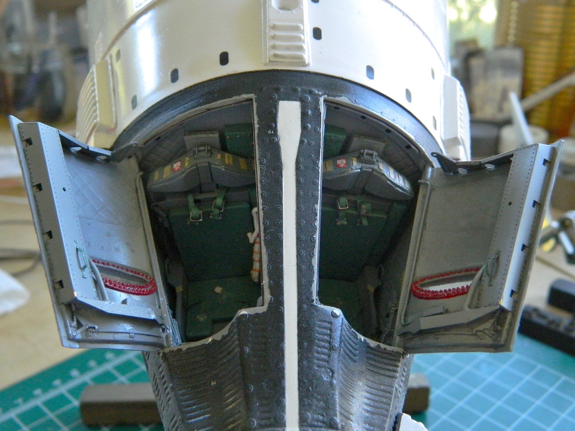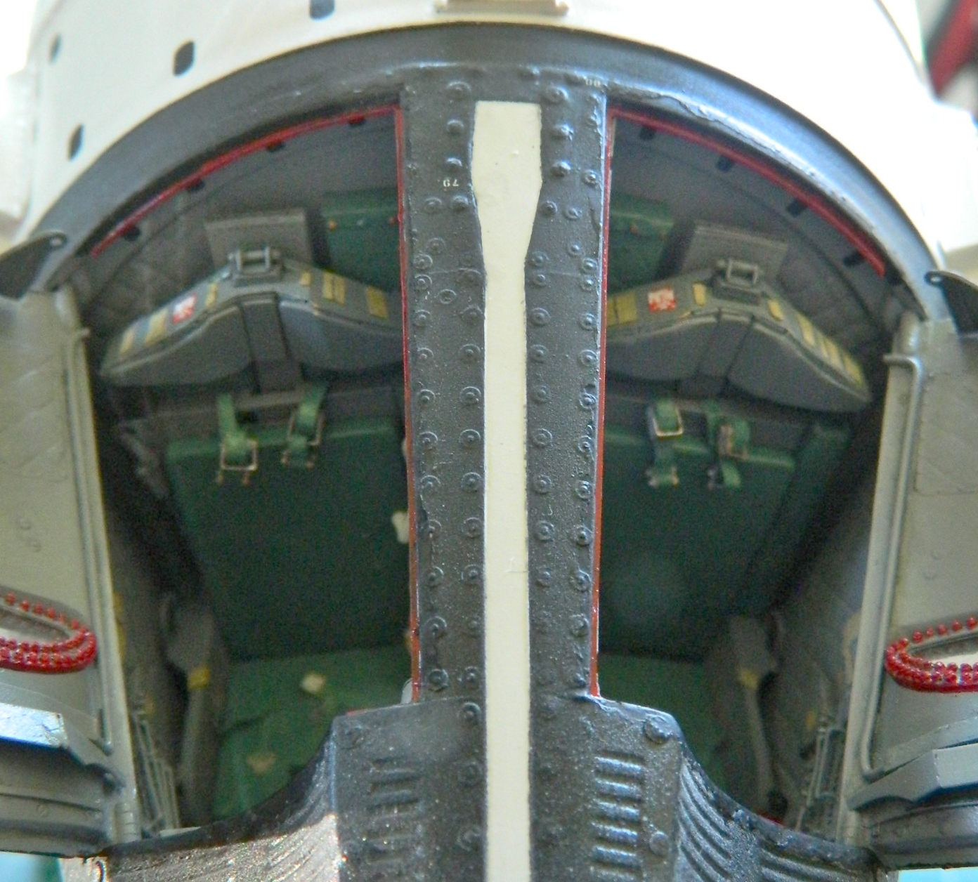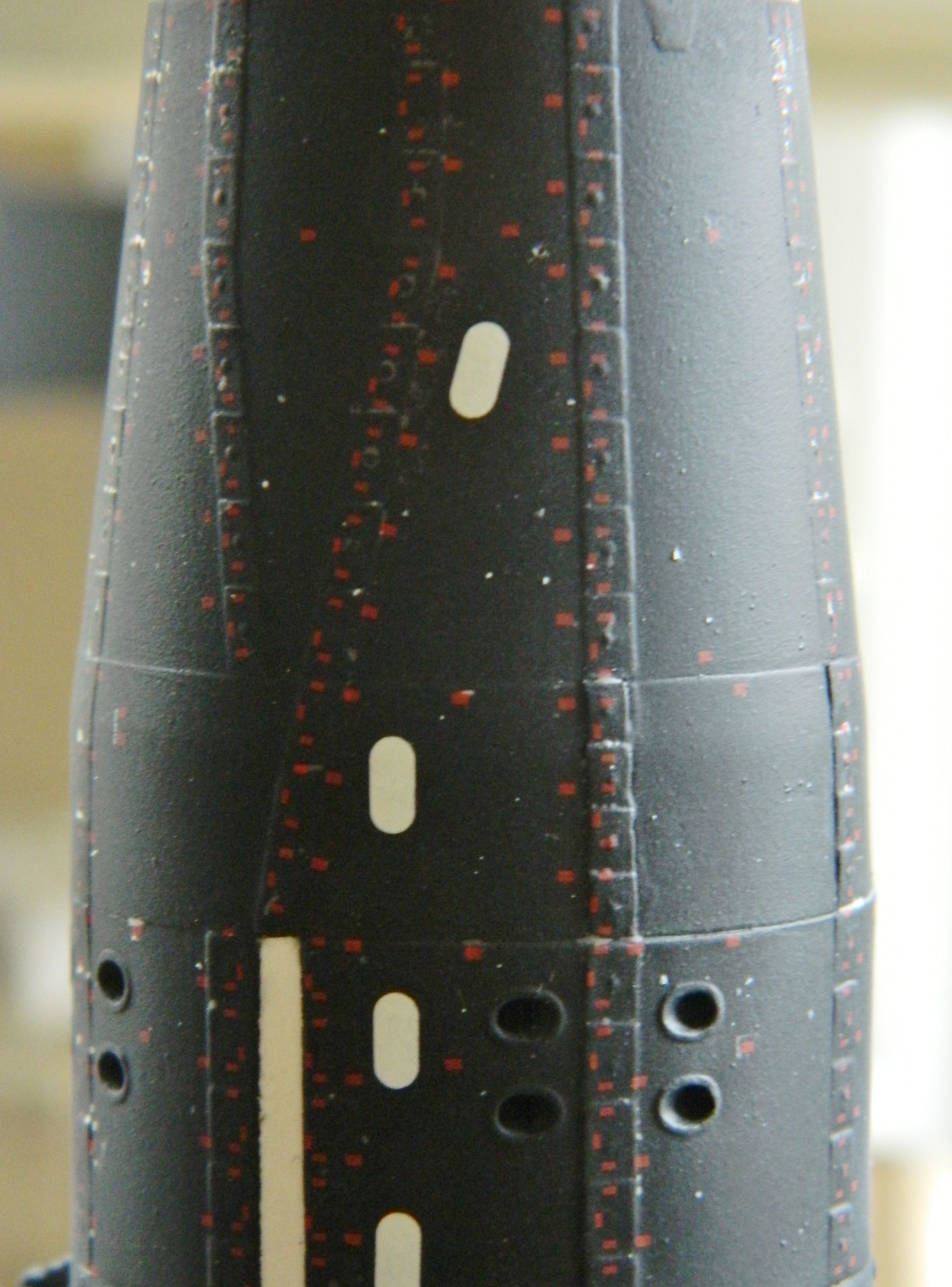 With the edges of the openings and hatches done as well as was possible, the red hatch seals were replicated with paint: