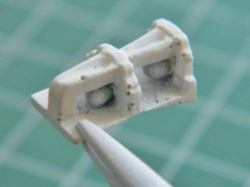 The horizon sensor snapped off during all the handling, so I took this opportunity to spray it matte white. And well, gosh…more bubbles: