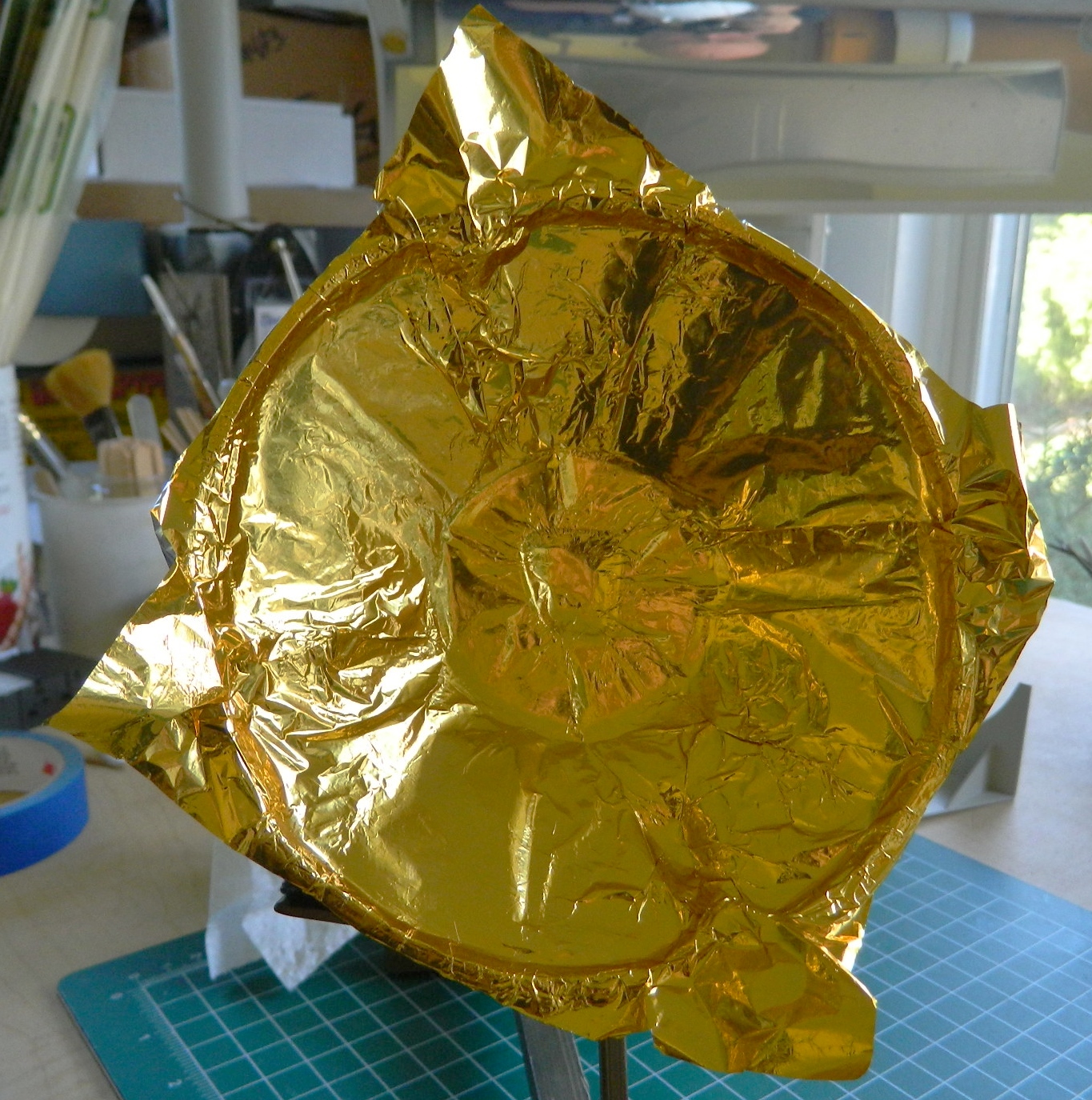 I used watch crystal cement to attach the foil at the periphery, and then came the nerve-twisting trimming: