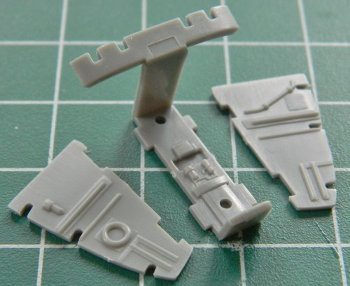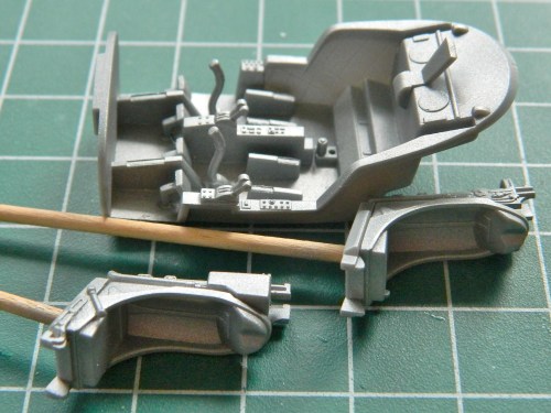 There are separate parts for the rudder pedals and throttles. The throttles needed a bit of seam removal and adding slots that the throttles would slide in: