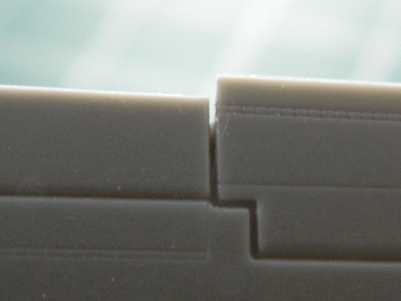 I glued .010″ (.254mm) styrene to the face, let it sit for a bit, and once trimmed the fit was much better: